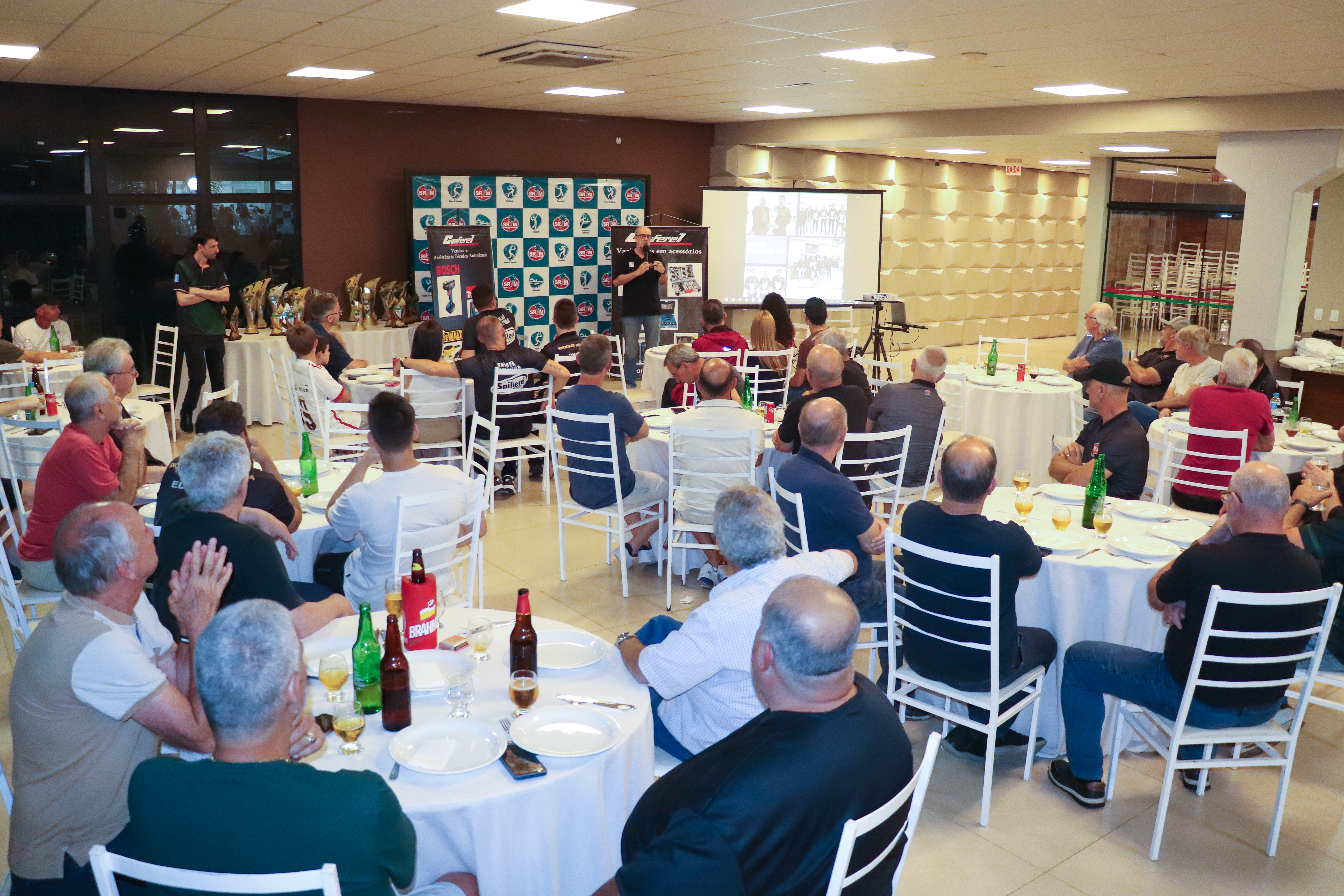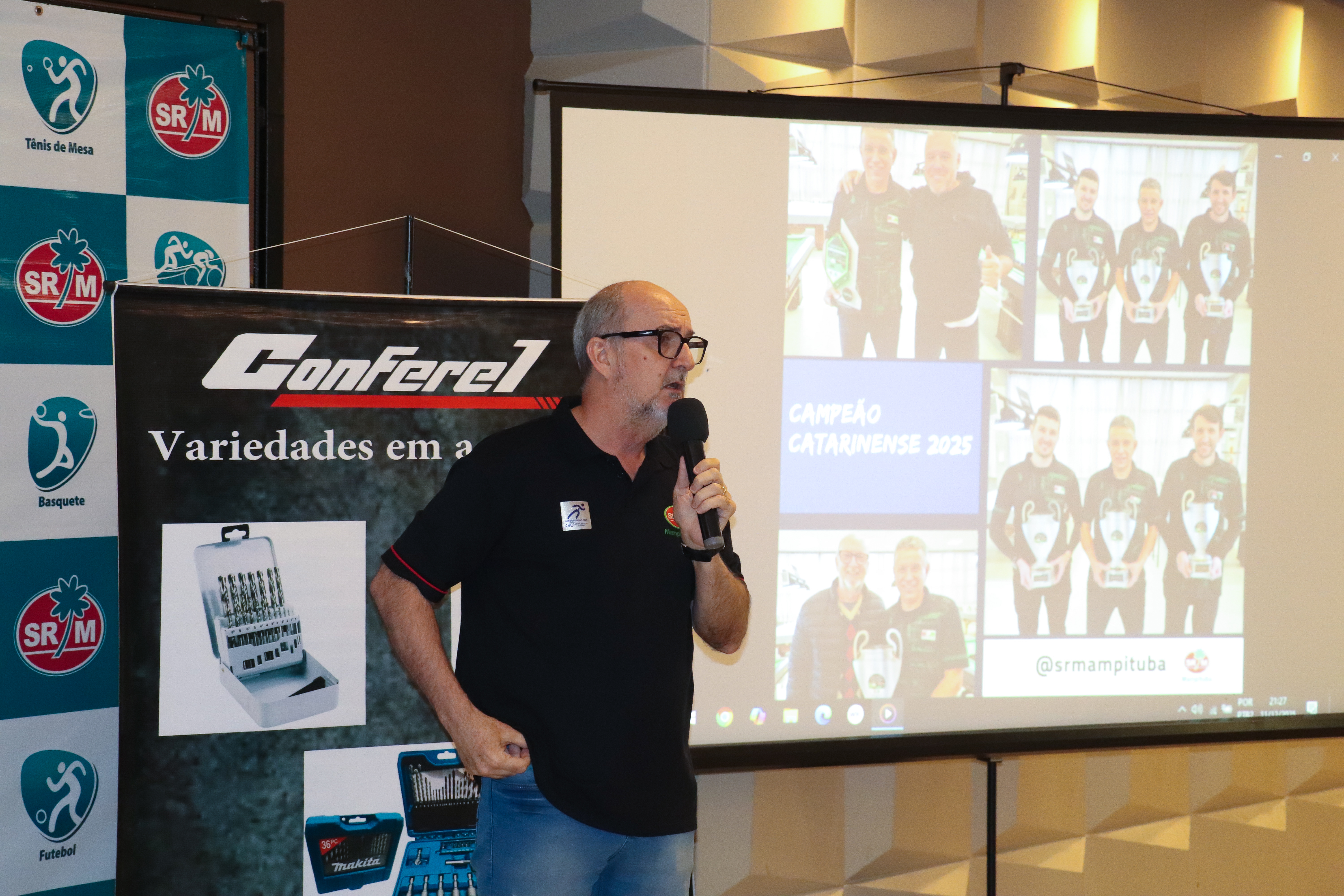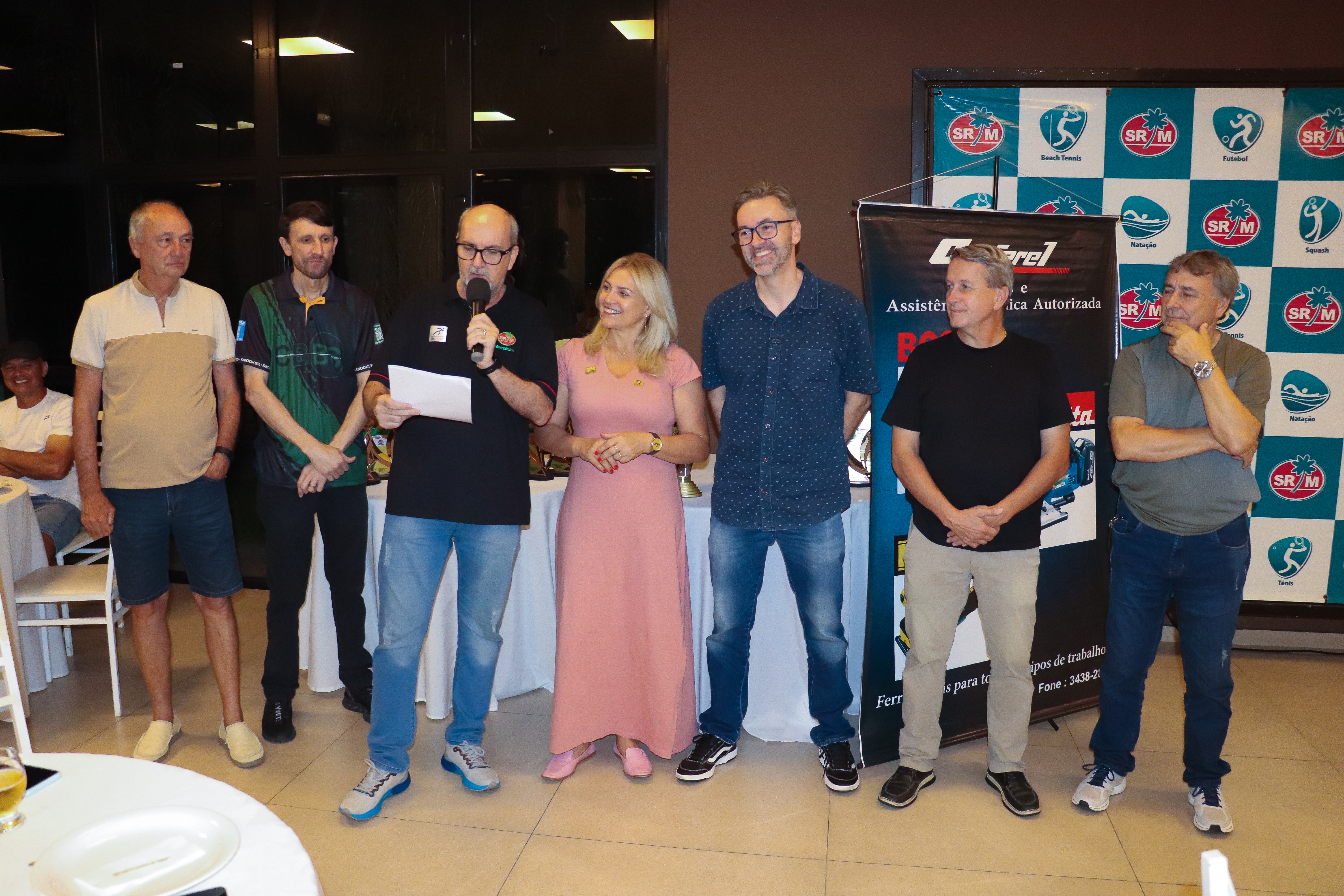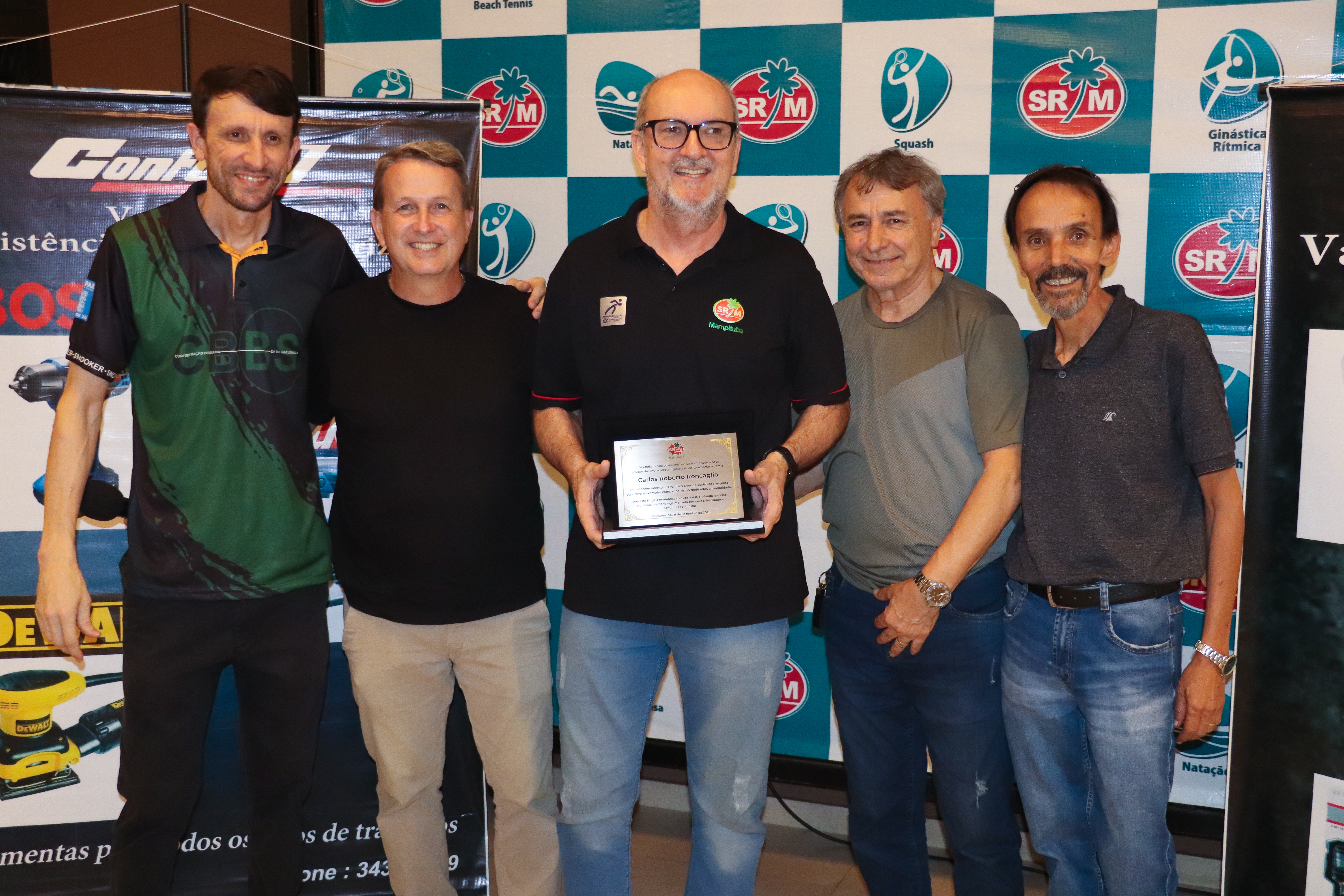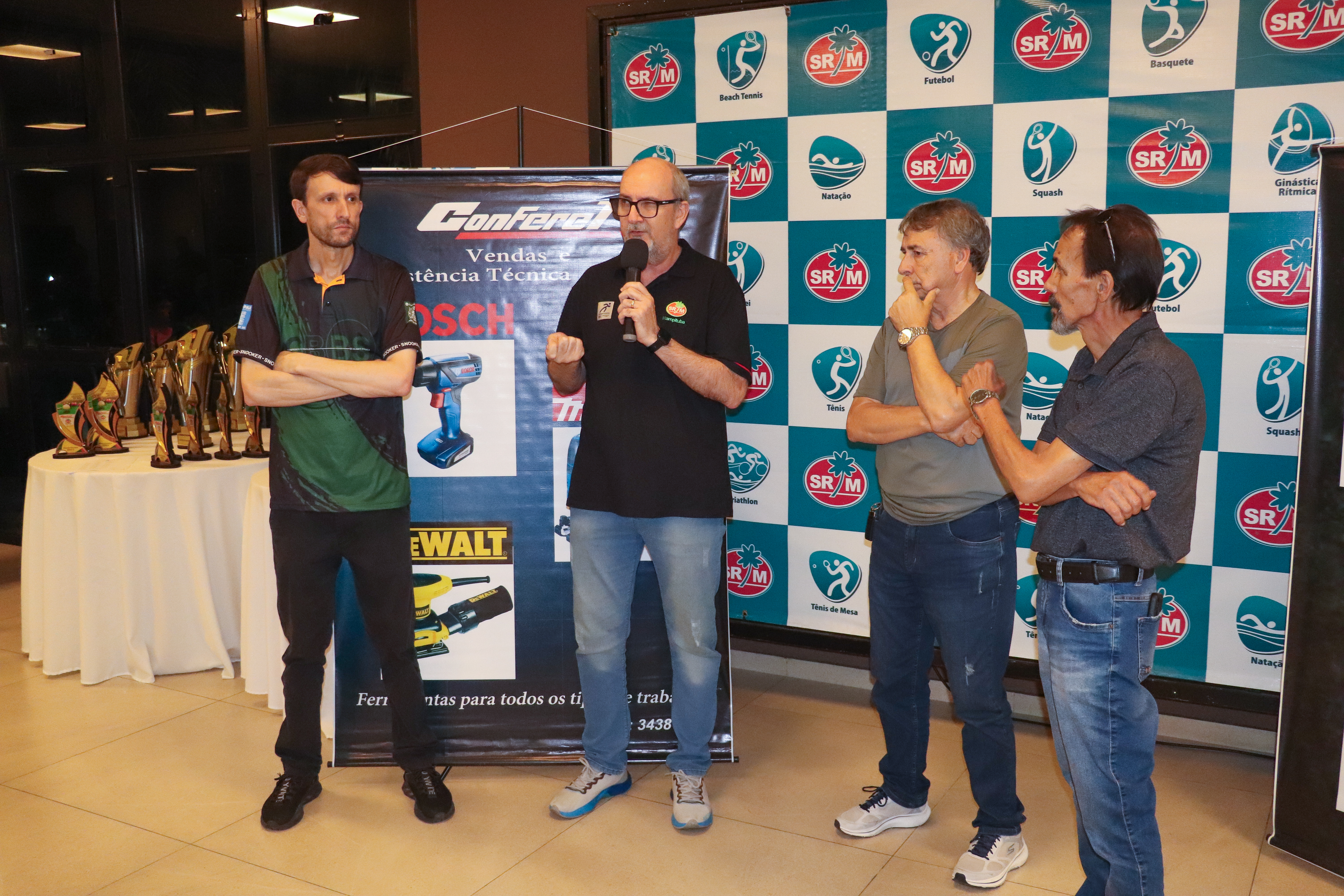 Participaram da entrega dos troféus, o presidente do Mampituba, Larciney Antônio Fabris, o diretor de Sinuca, Carlos Roberto Roncaglio, a diretora do CEE e presidente da FME Criciúma, Robinalva Ferreira, o diretor de Jogos de Mesa e Bocha, Luiz Rodolfo Michels, o diretor de Golfe, Klaus Breier Cardozo e o representante da Conferel Ferramentas, Ademir da Silva.