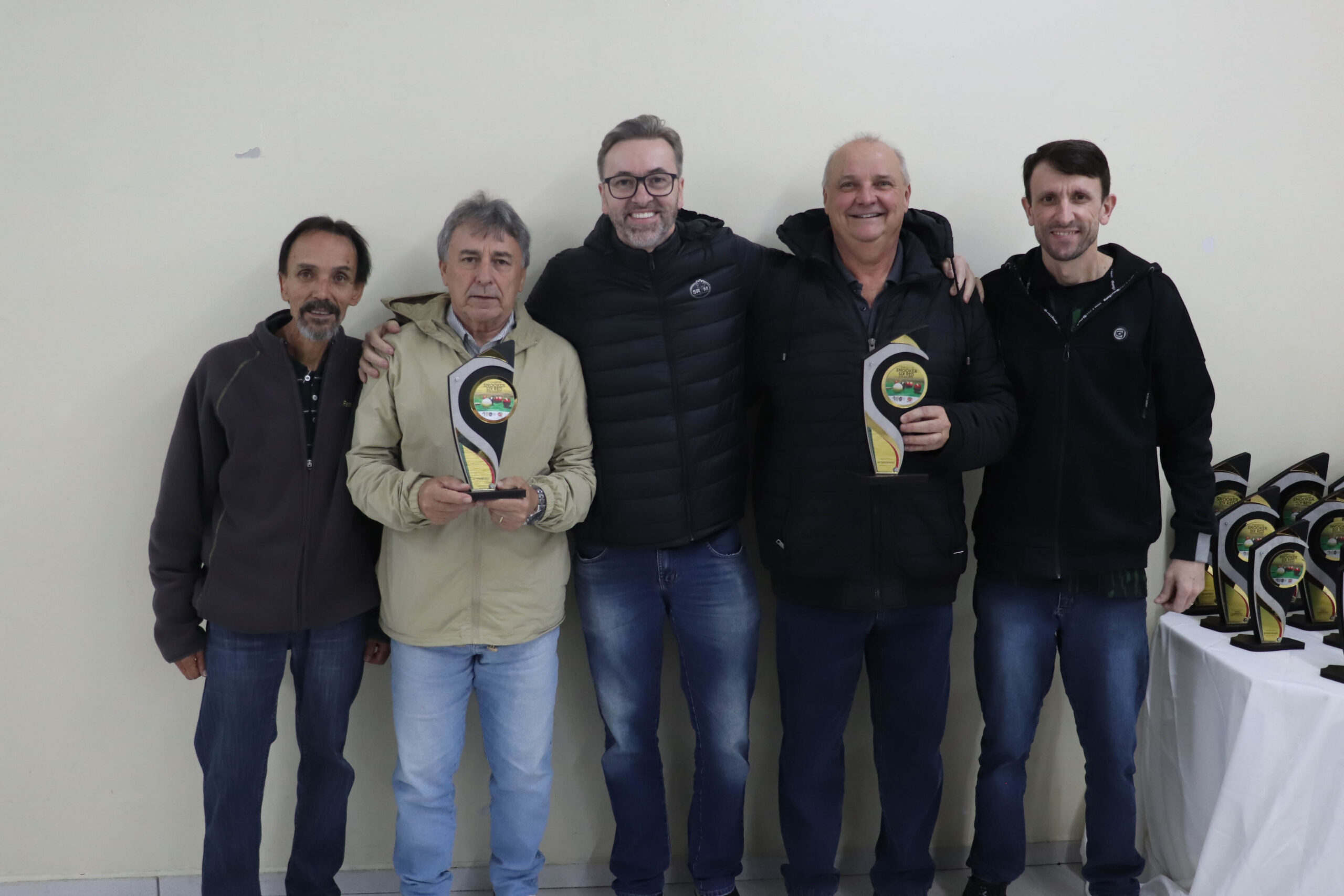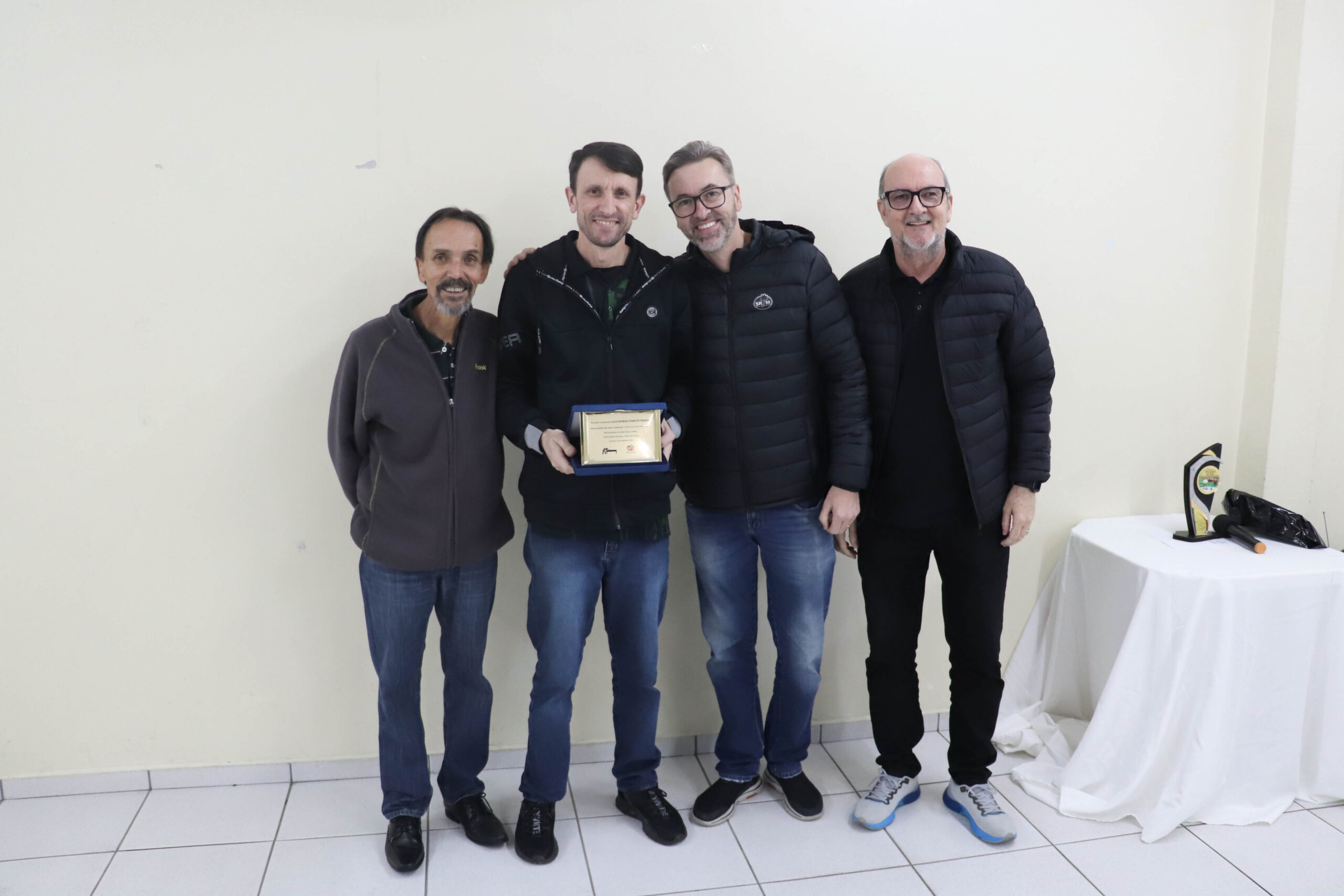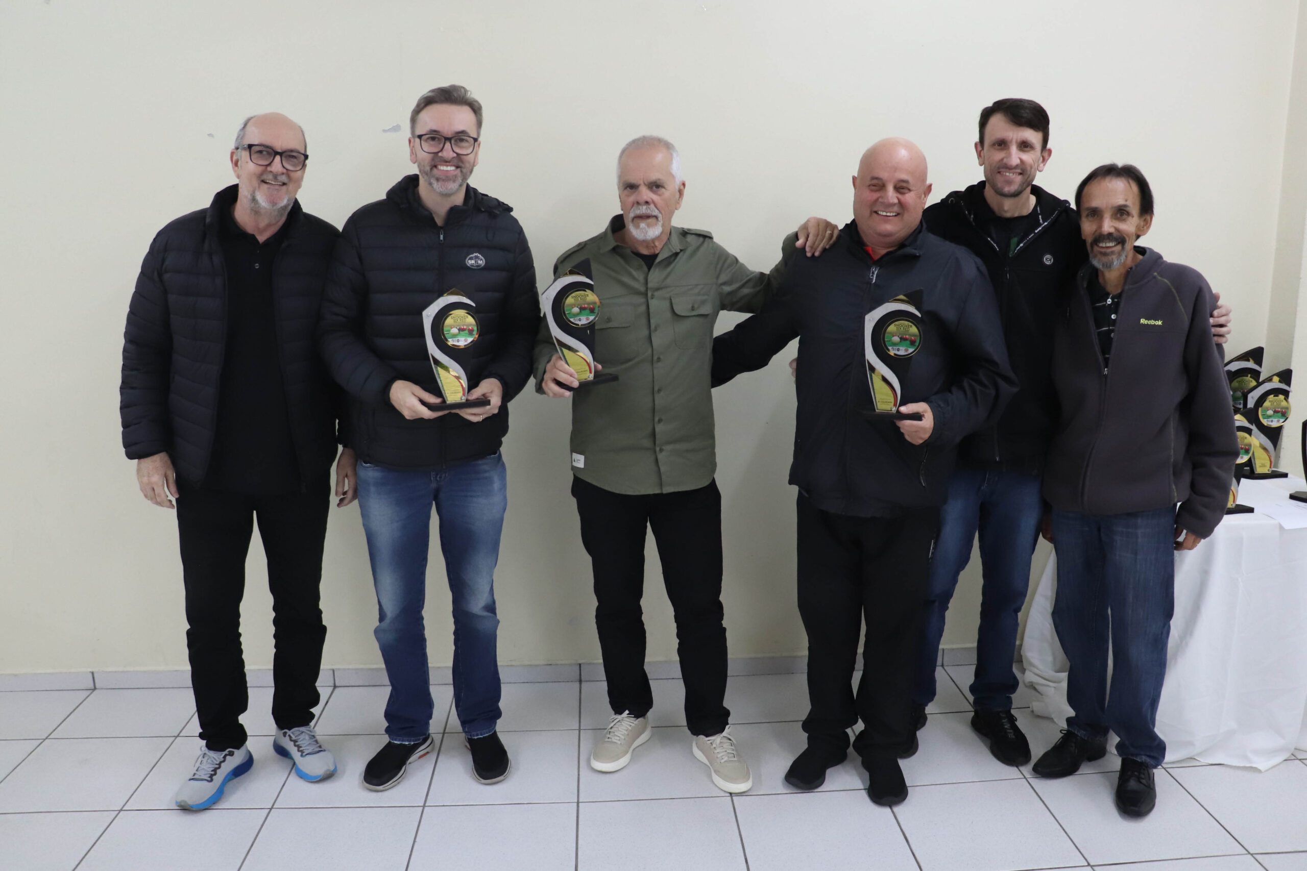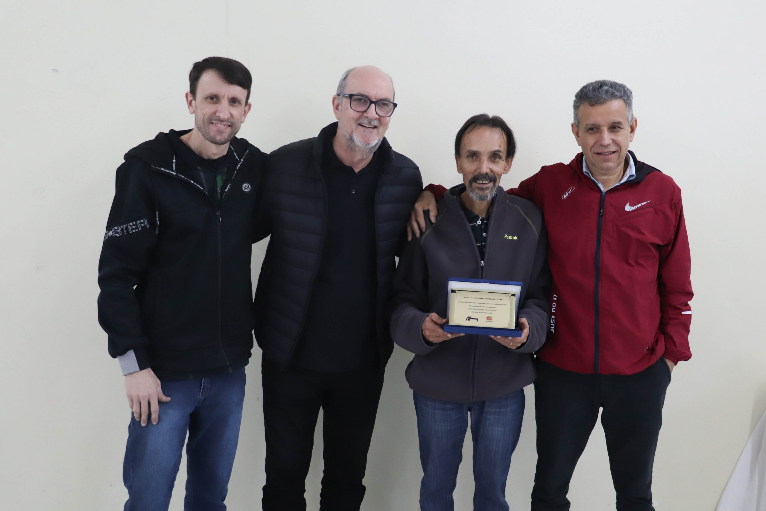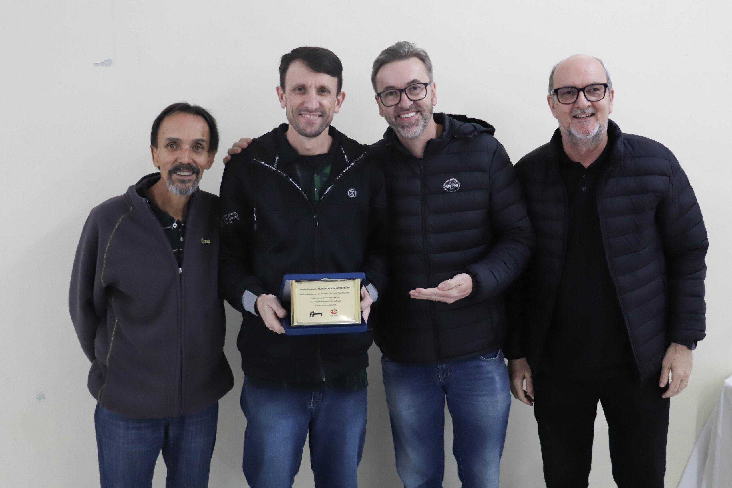 A noite também foi marcada por homenagens especiais. O vice-diretor de Sinuca, Adilson Vieira, e o coordenador de Sinuca, Claudiomar Frezza, receberam placas de reconhecimento pela dedicação e trabalho em prol da modalidade no clube. Além disso, os associados Ademir da Silva, Dhiones Arent e Claudiomar Frezza (Mafreh) foram aplaudidos pelo feito inédito: formar o top 3 do Campeonato Catarinense de Sinuca deste ano, um marco para a história do Mampituba.