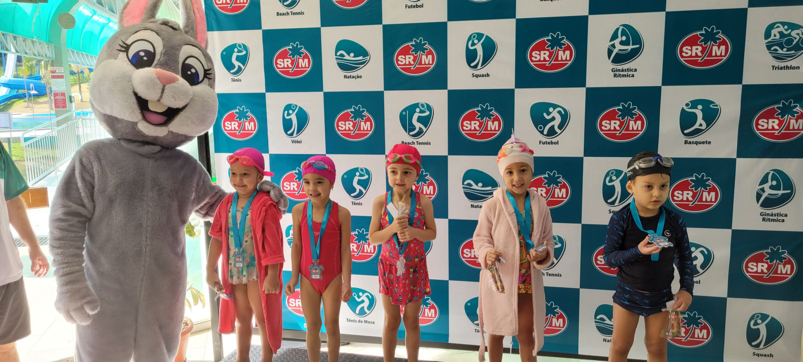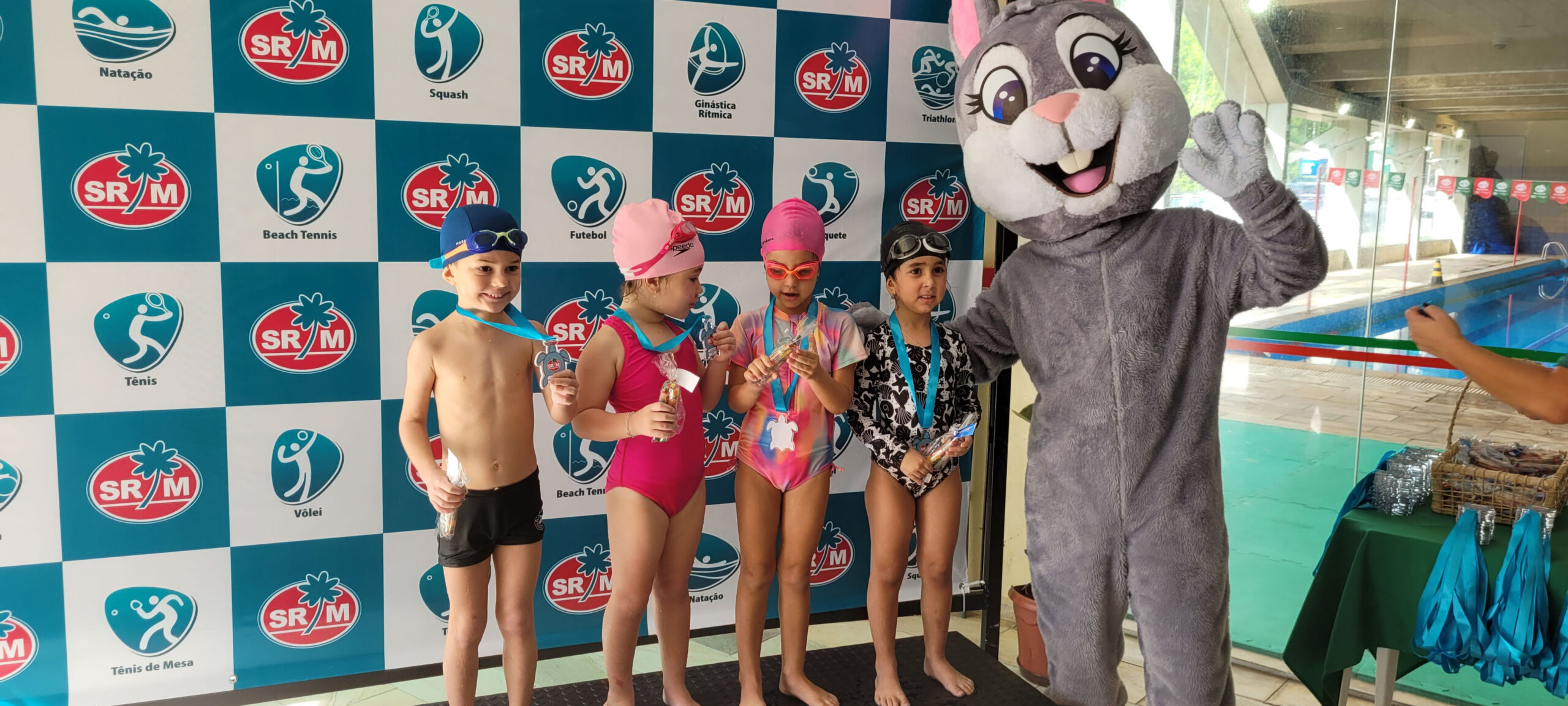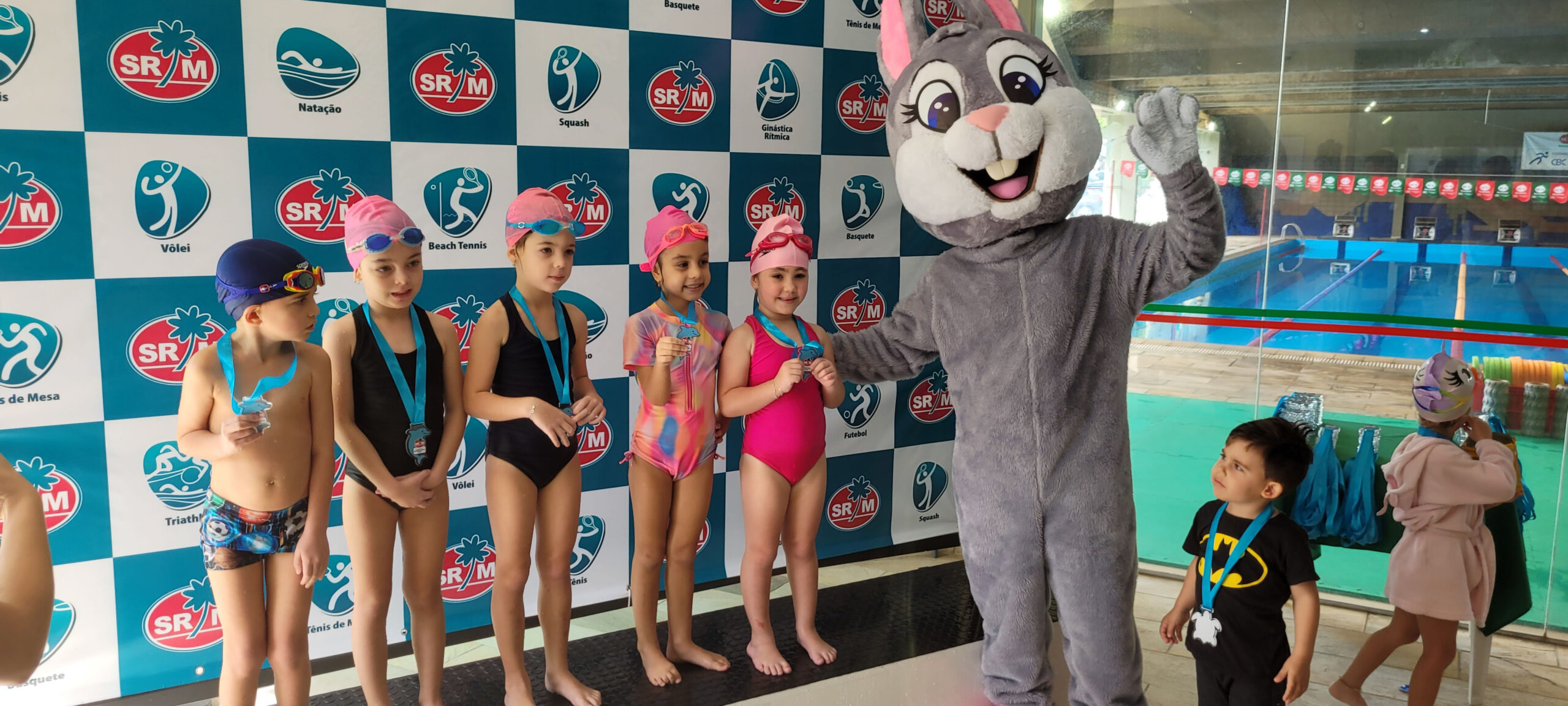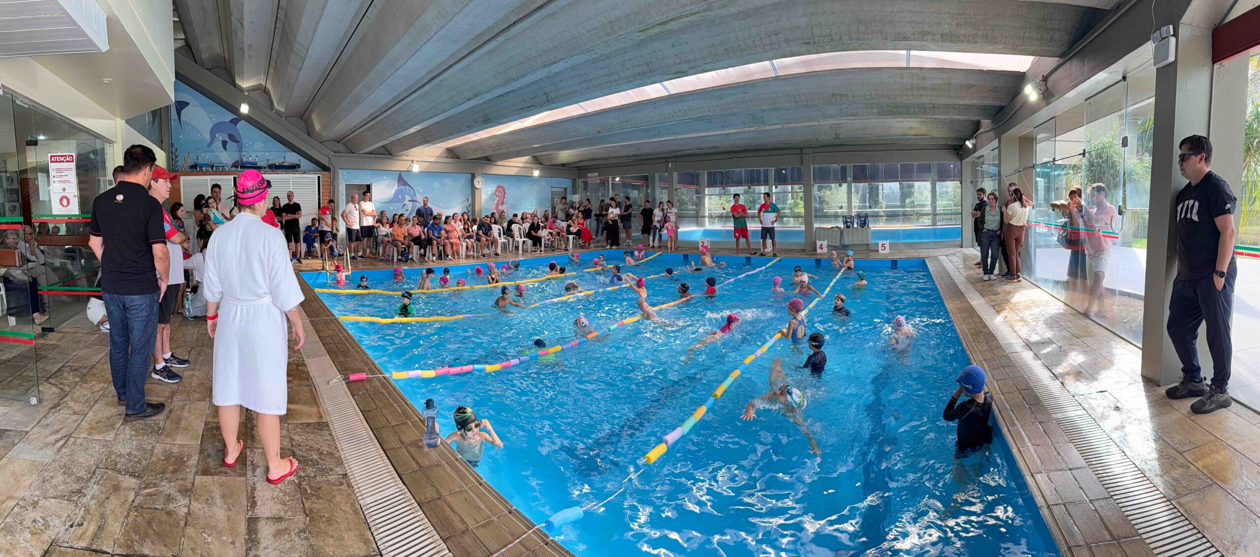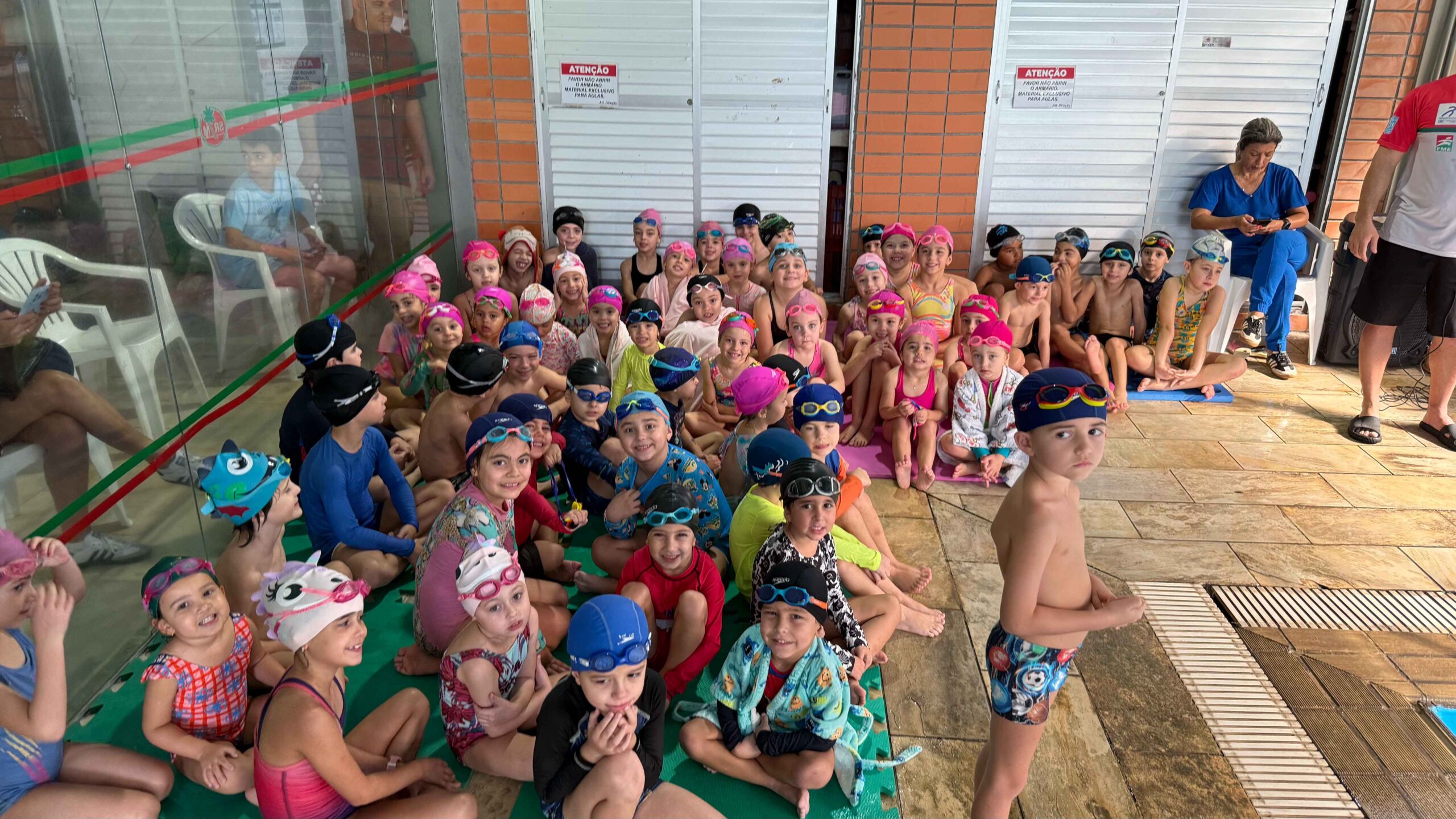 A Piscina Infantil recebeu neste sábado (17) a 1ª Competição Infantil Interna de Natação. O evento contou com a participação de mais de 50 alunos nas três provas da modalidade. Ao final de cada atividade, as crianças receberam medalhas simbólicas com ilustrações de animais marinhos: polvo, tartaruga e golfinho.
