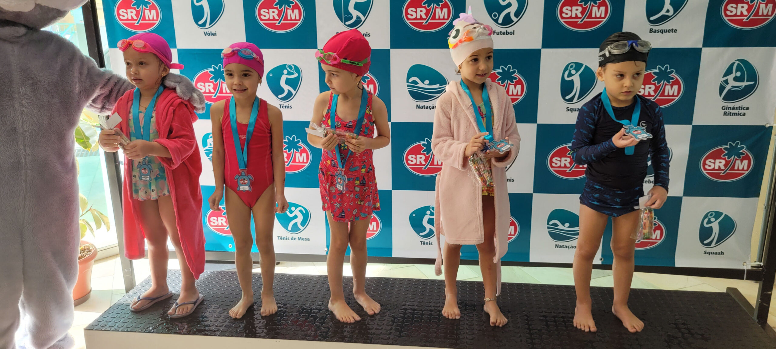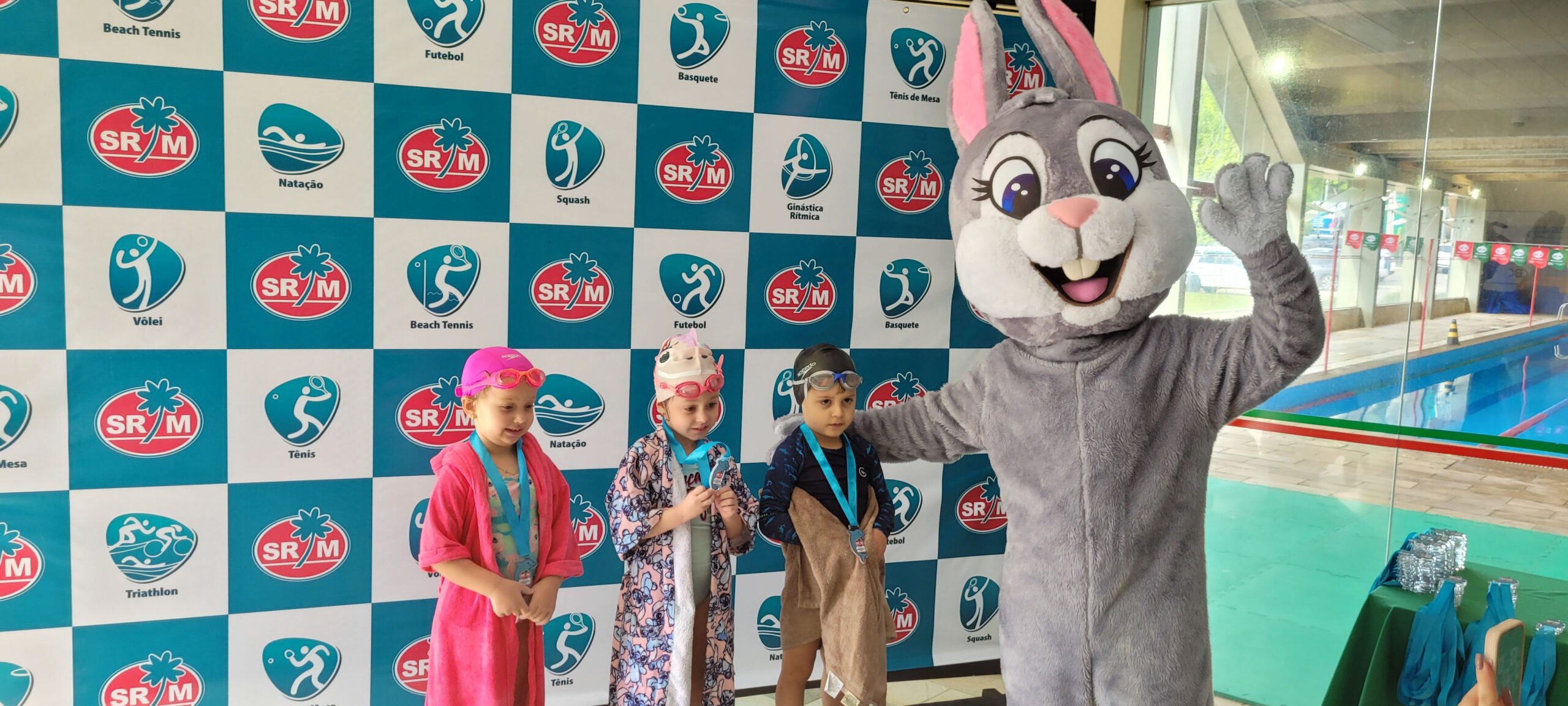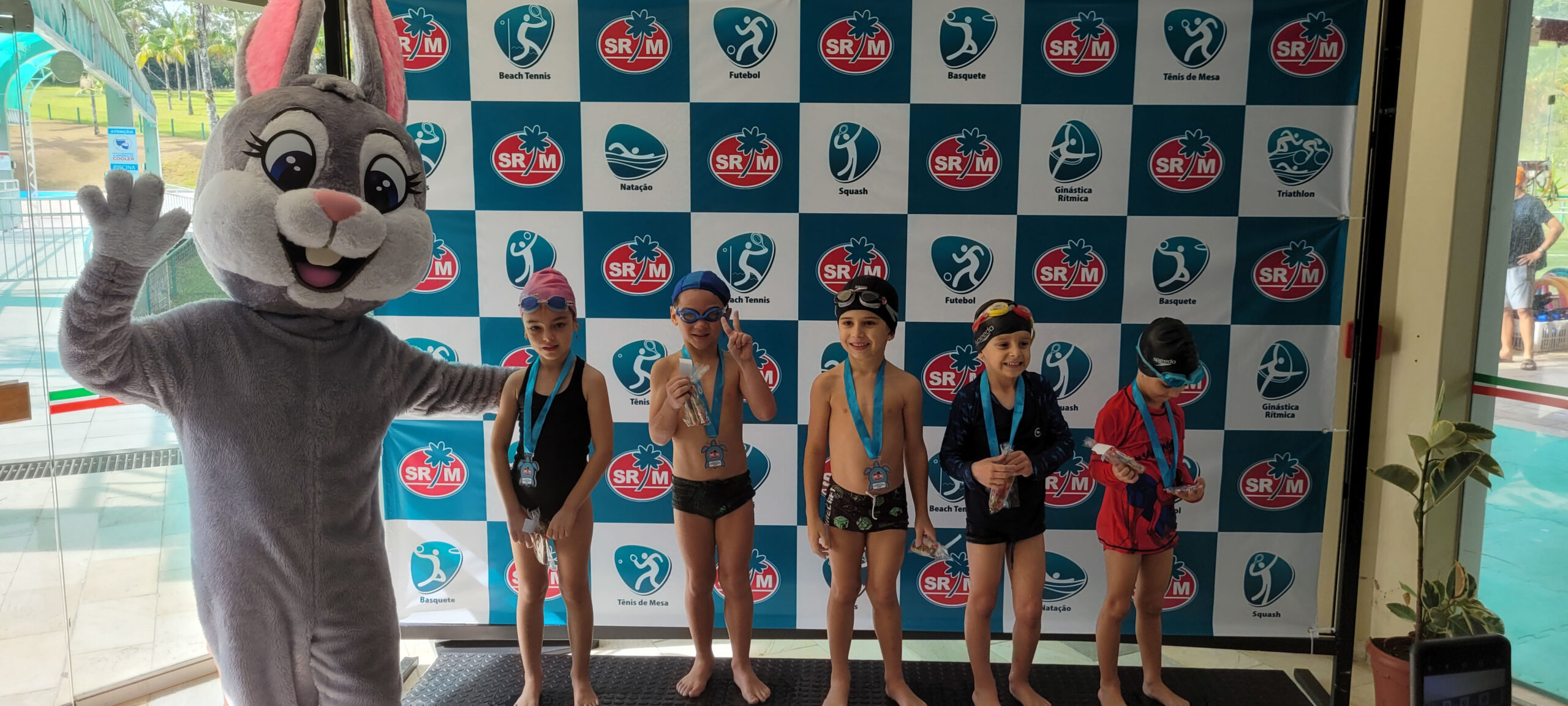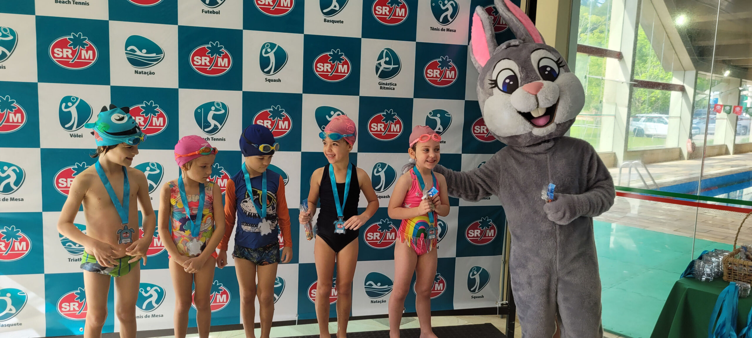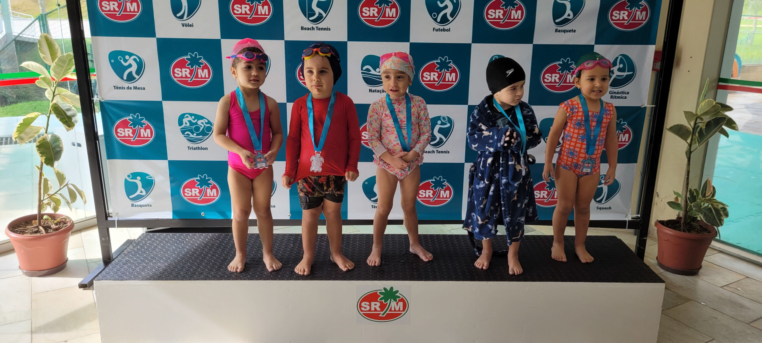 A Piscina Infantil recebeu neste sábado (17) a 1ª Competição Infantil Interna de Natação. O evento contou com a participação de mais de 50 alunos nas três provas da modalidade. Ao final de cada atividade, as crianças receberam medalhas simbólicas com ilustrações de animais marinhos: polvo, tartaruga e golfinho.