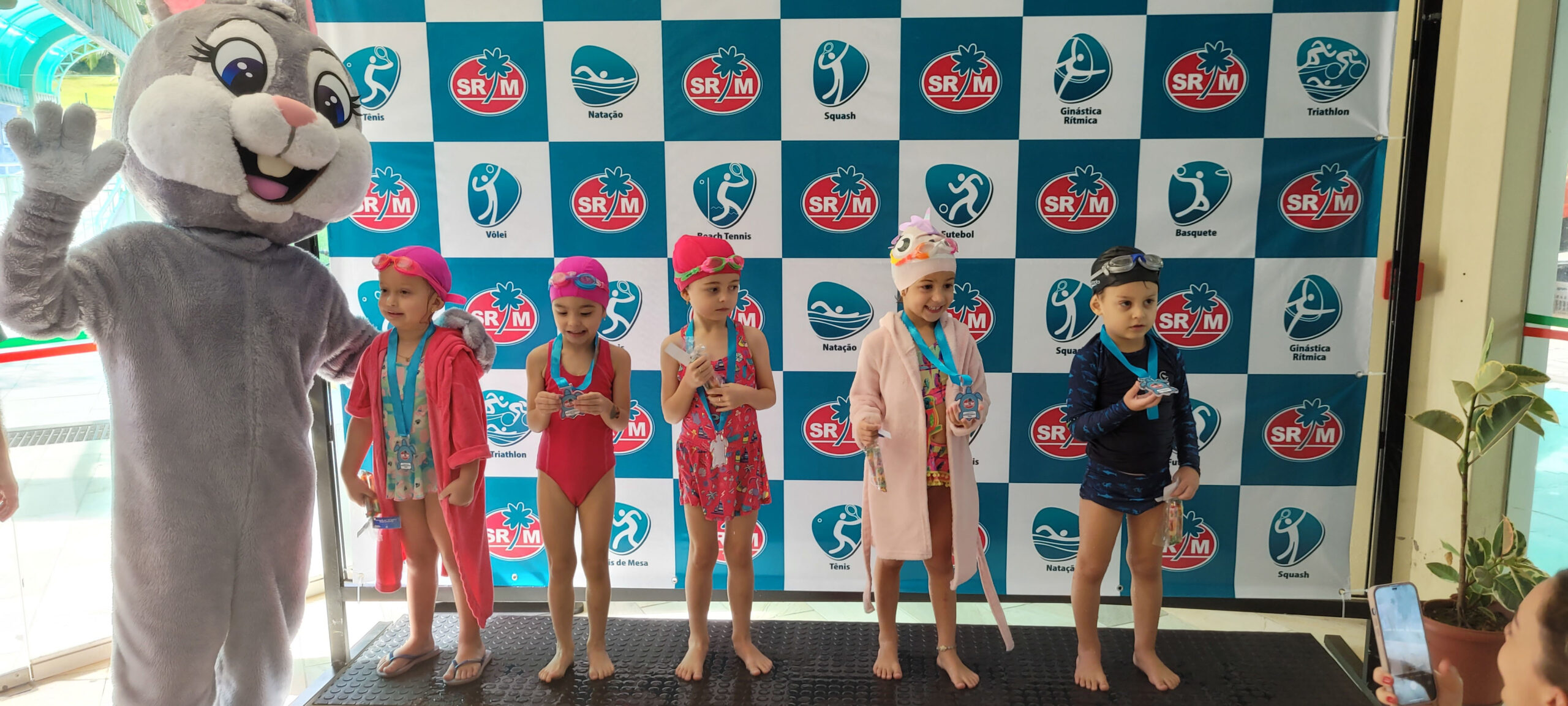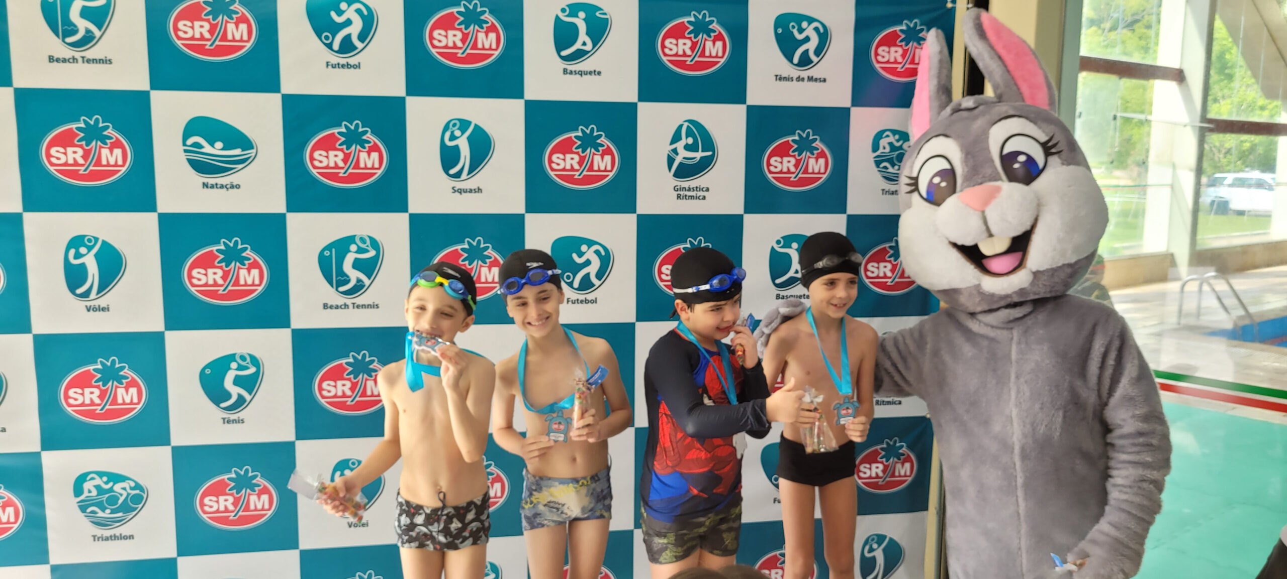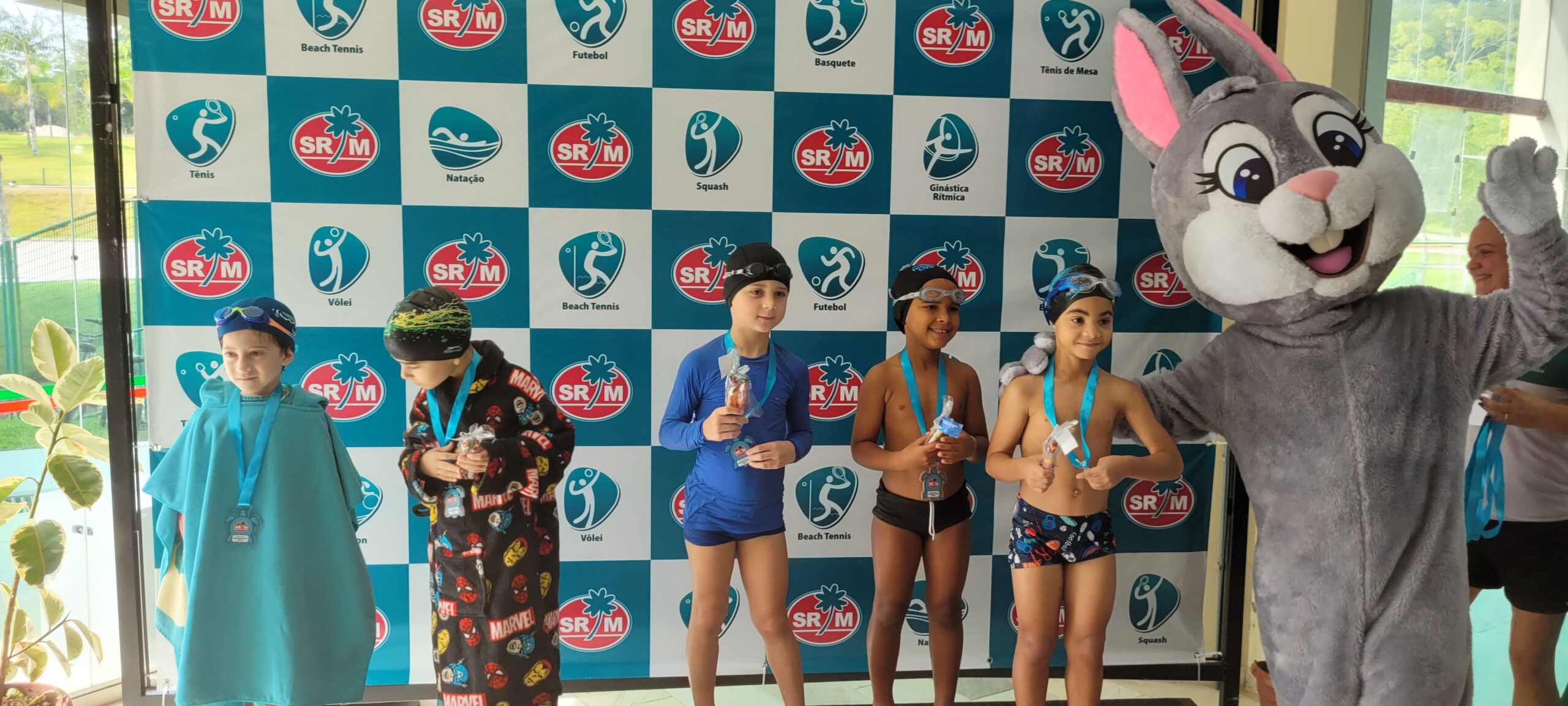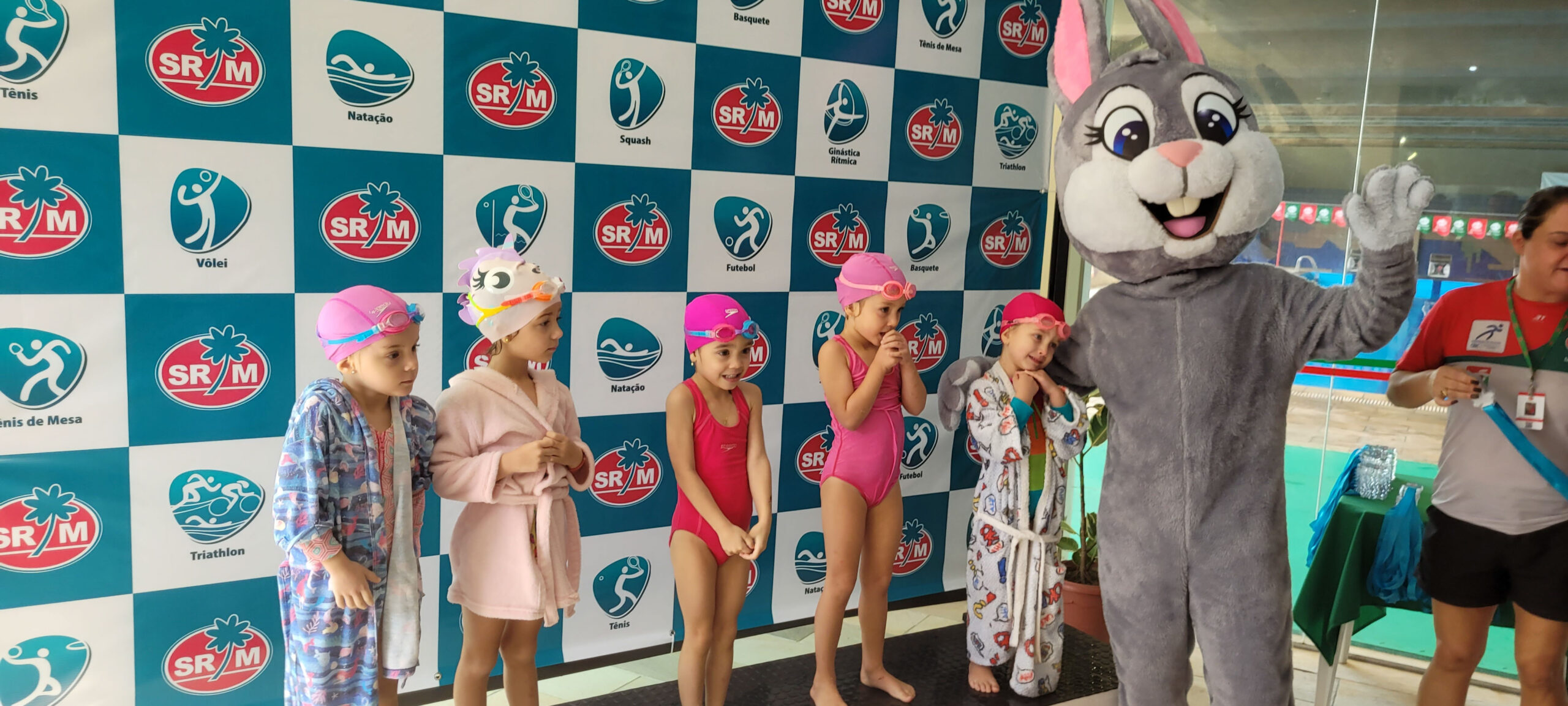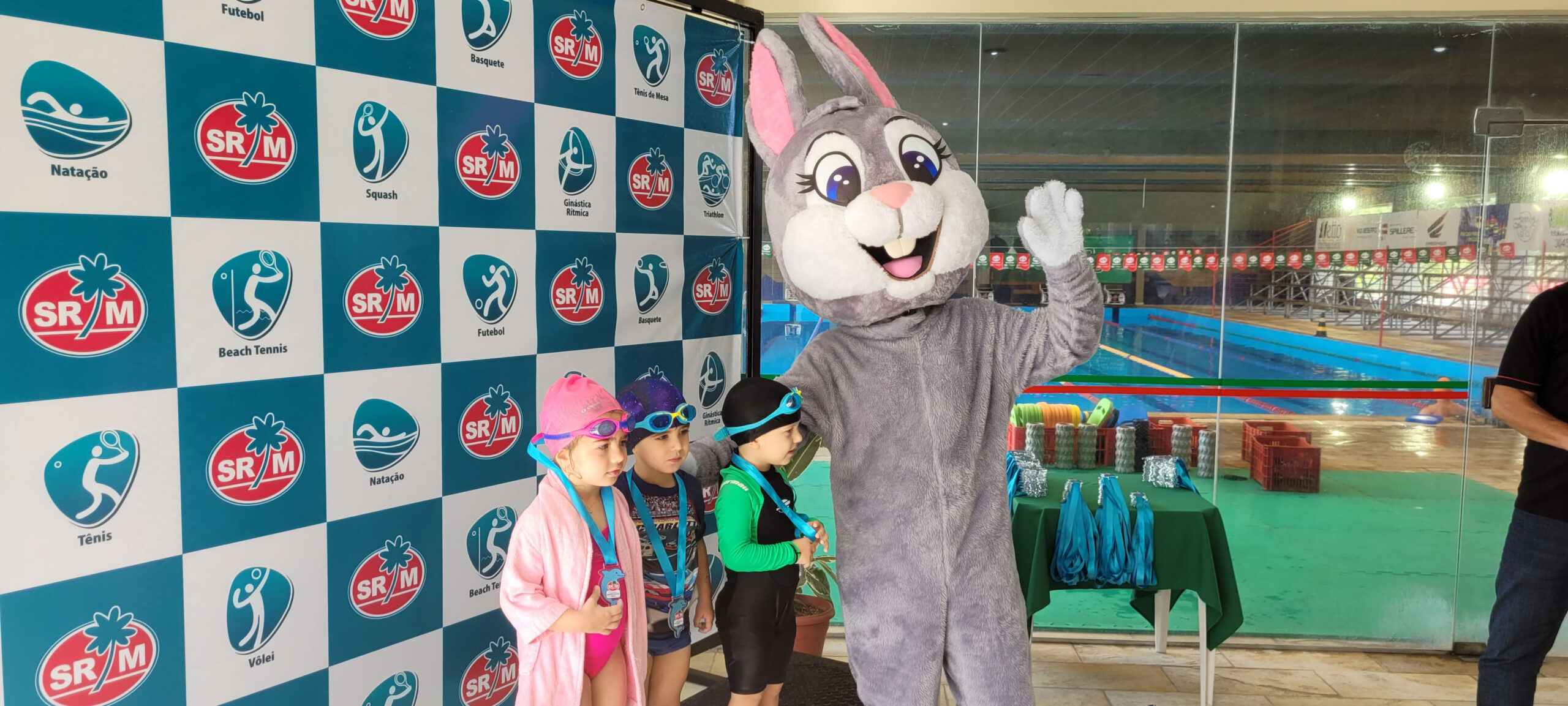A Piscina Infantil recebeu neste sábado (17) a 1ª Competição Infantil Interna de Natação. O evento contou com a participação de mais de 50 alunos nas três provas da modalidade. Ao final de cada atividade, as crianças receberam medalhas simbólicas com ilustrações de animais marinhos: polvo, tartaruga e golfinho.