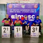 A equipe de tênis de mesa do Mampituba/FME Criciúma/Unesc teve um fim de semana de grandes resultados. Na 6ª etapa do Circuito Estadual de Tênis de Mesa, realizada neste final de semana em Lages. O grupo conquistou diversos pódios nas disputas por equipes e individuais, além do 3º lugar no troféu eficiência paralímpico.