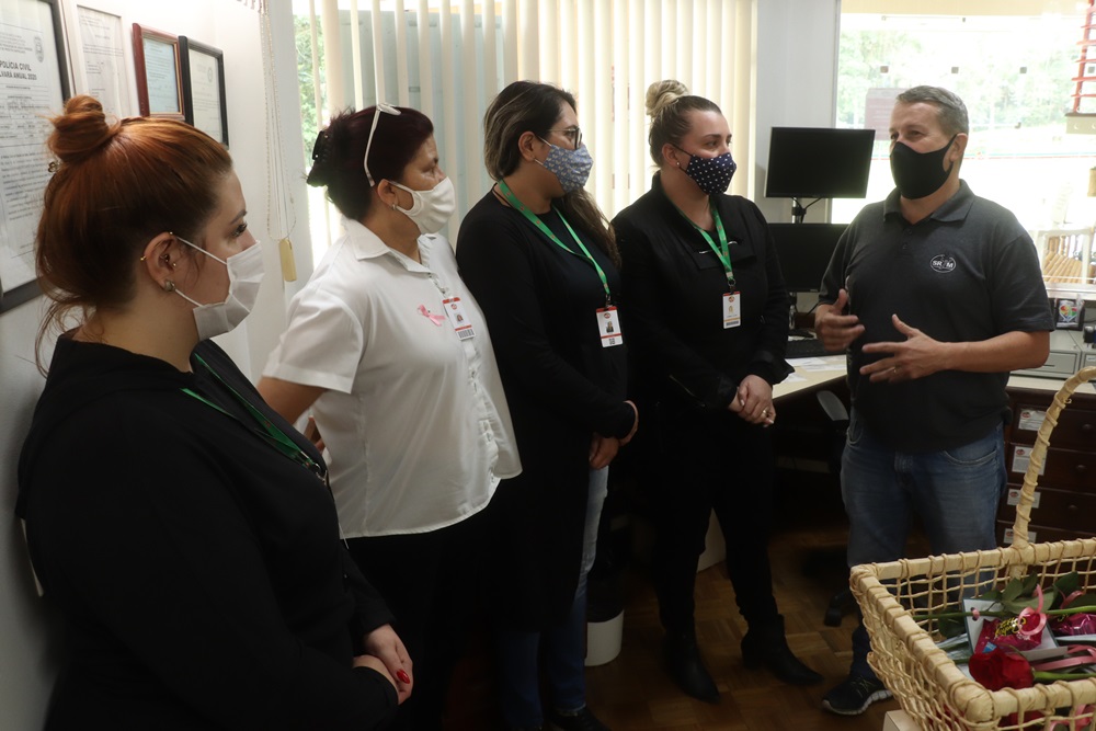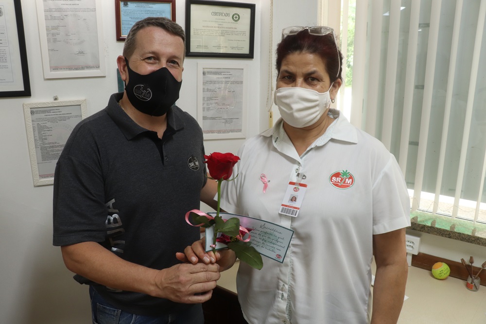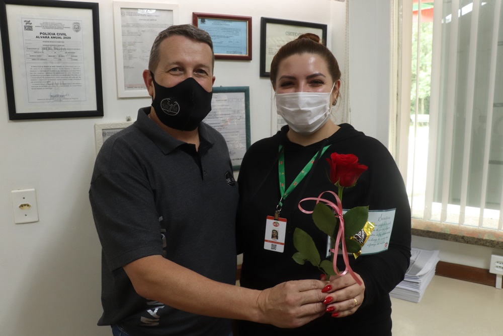 O vice-presidente administrativo Larciney Antônio Fabris fez a entrega de uma rosa com um bombom. Além de uma bela mensagem para os colaboradores.