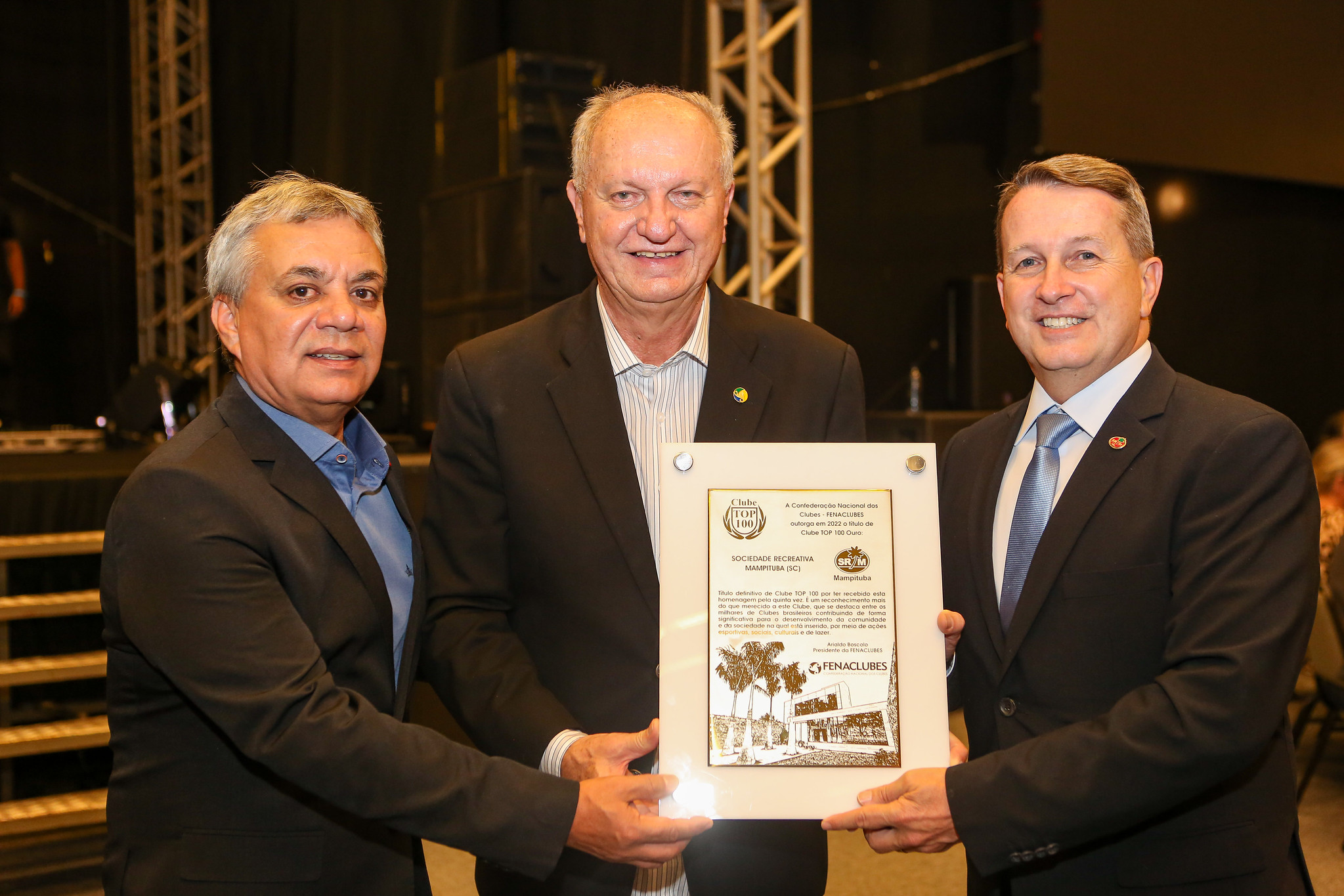 A Sociedade Recreativa Mampituba conquistou mais um grande prêmio de excelência ao longo dos 98 anos de história. Neste final de semana, o clube foi agraciado pela Confederação Nacional dos Clubes – FENACLUBES com o título de Clube Top 100 Ouro. Apenas dez clubes de todo o Brasil receberam a premiação, que continha as placas bronze, prata e ouro.
