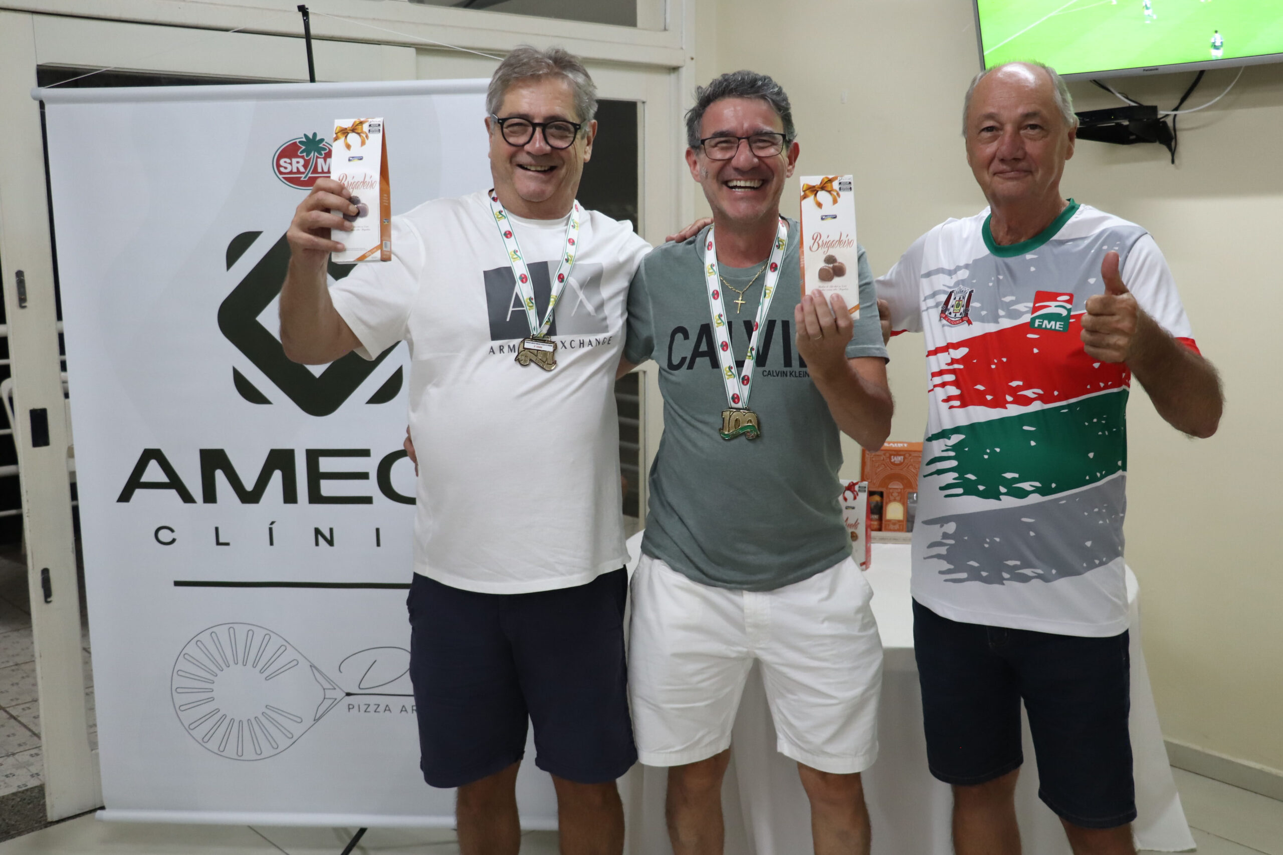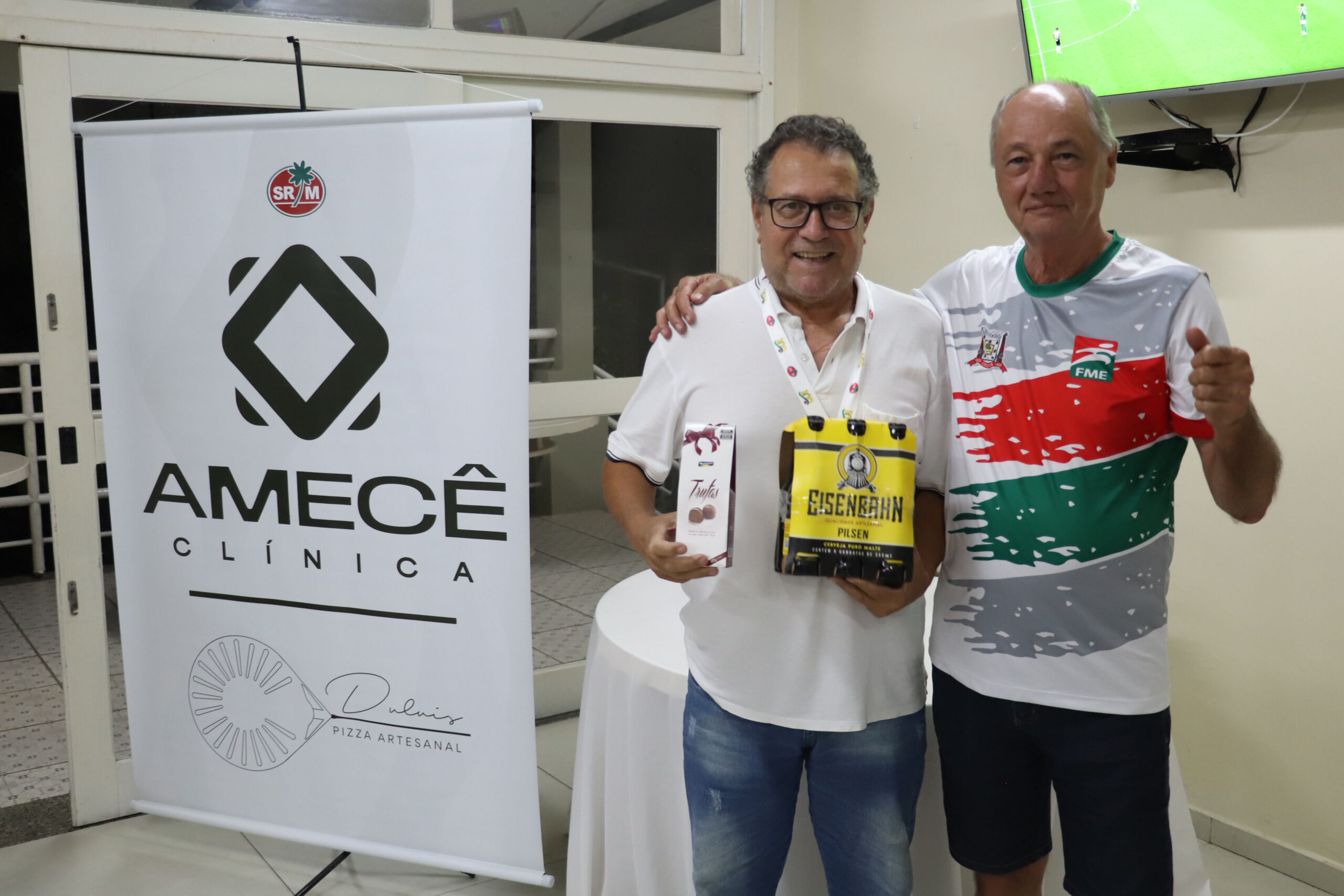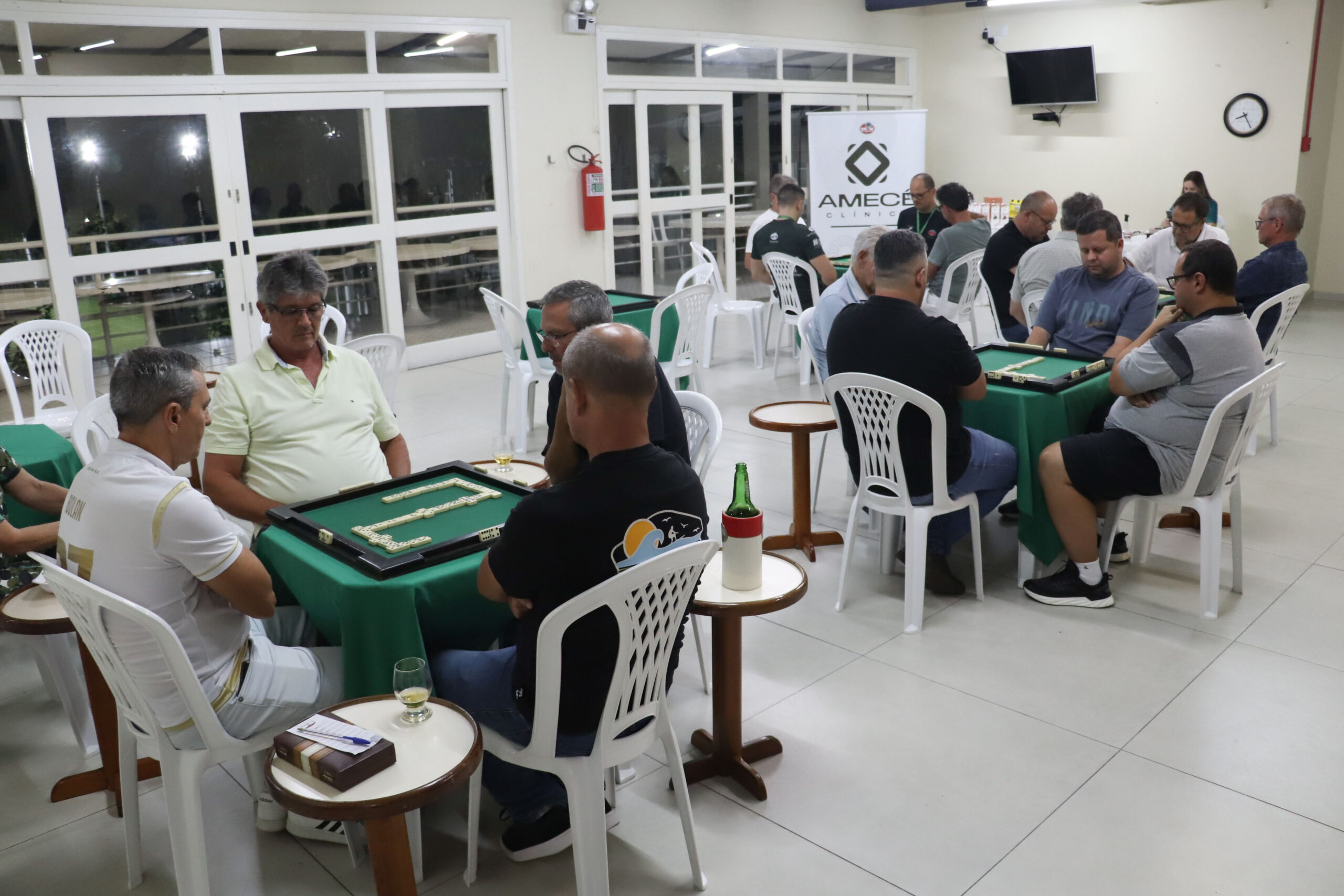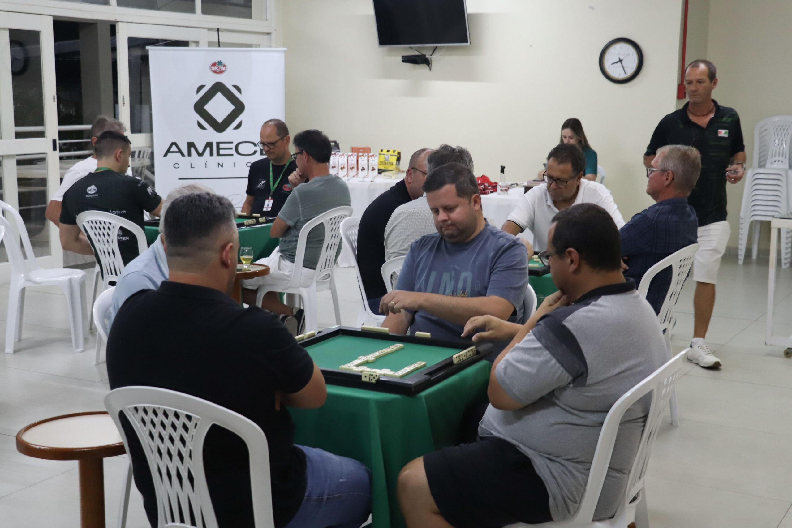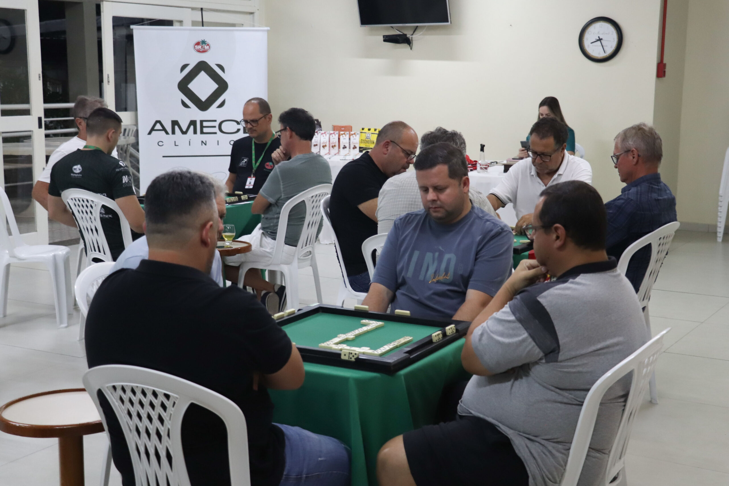Nesta quinta-feira (27), 16 associados participaram do Torneio “Clínica Amecê e Duluis Pizzas” de Dominó Masculino, disputado em um formato de quatro rodadas. Após confrontos equilibrados, a dupla Manoel Rodrigues e Adriano Cassetari foi campeã com quatro vitórias e somando 456 pontos.