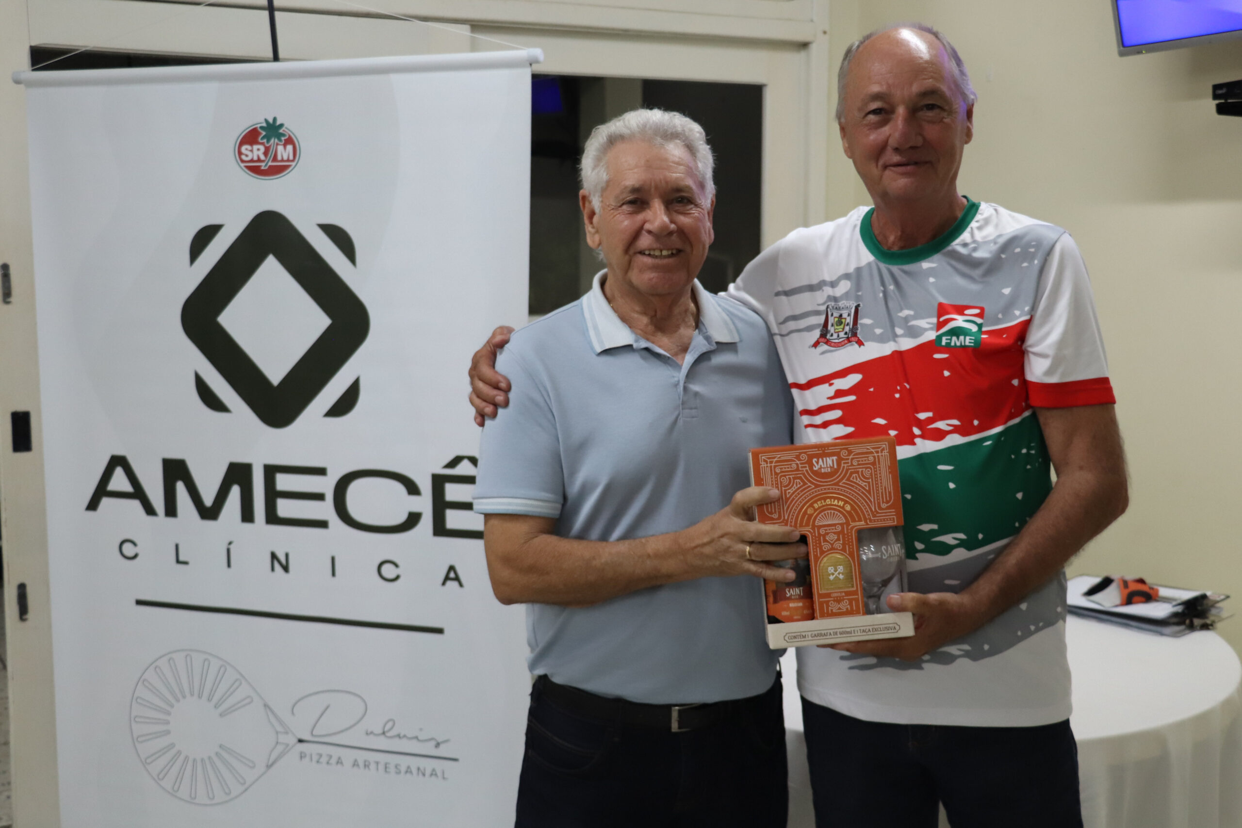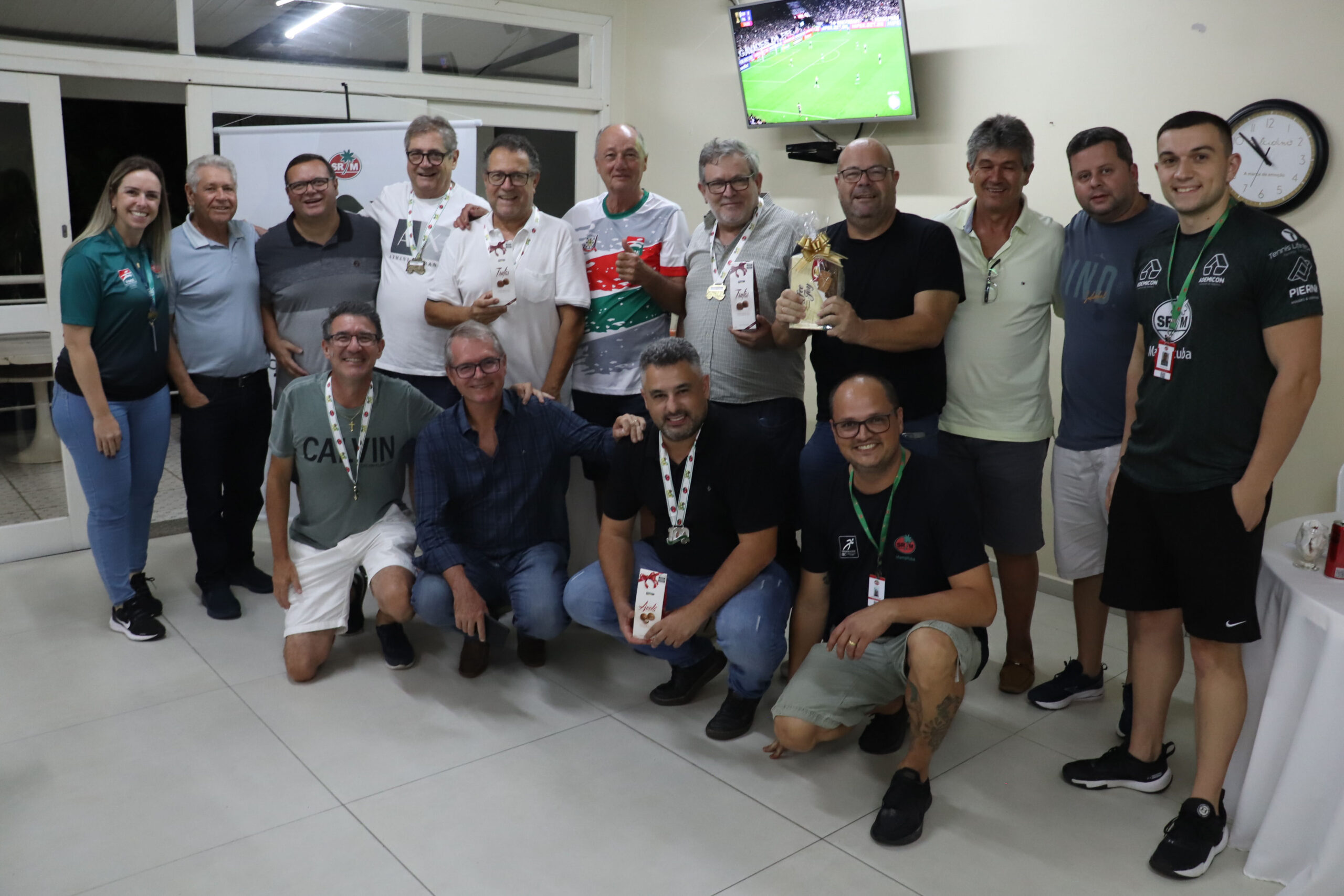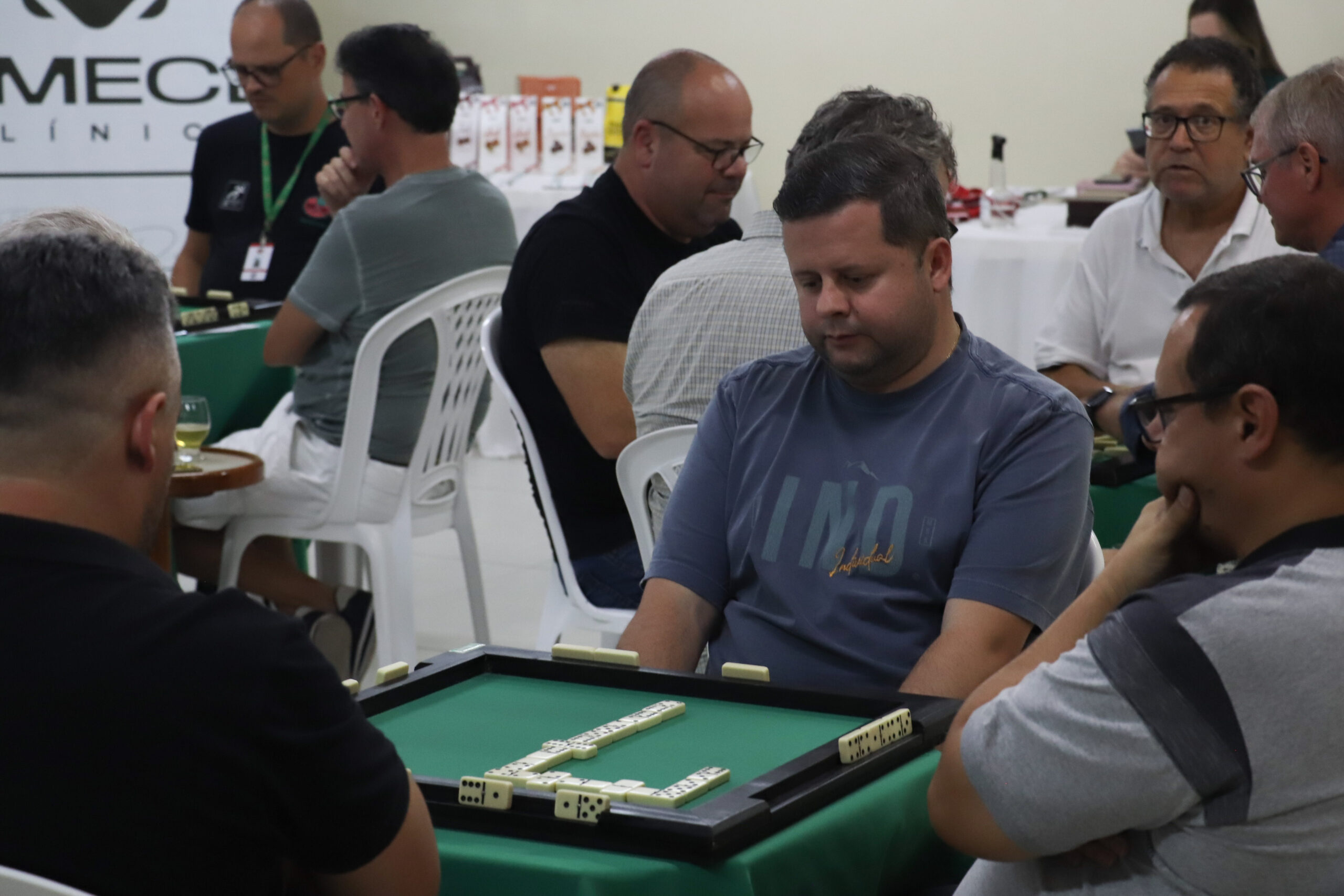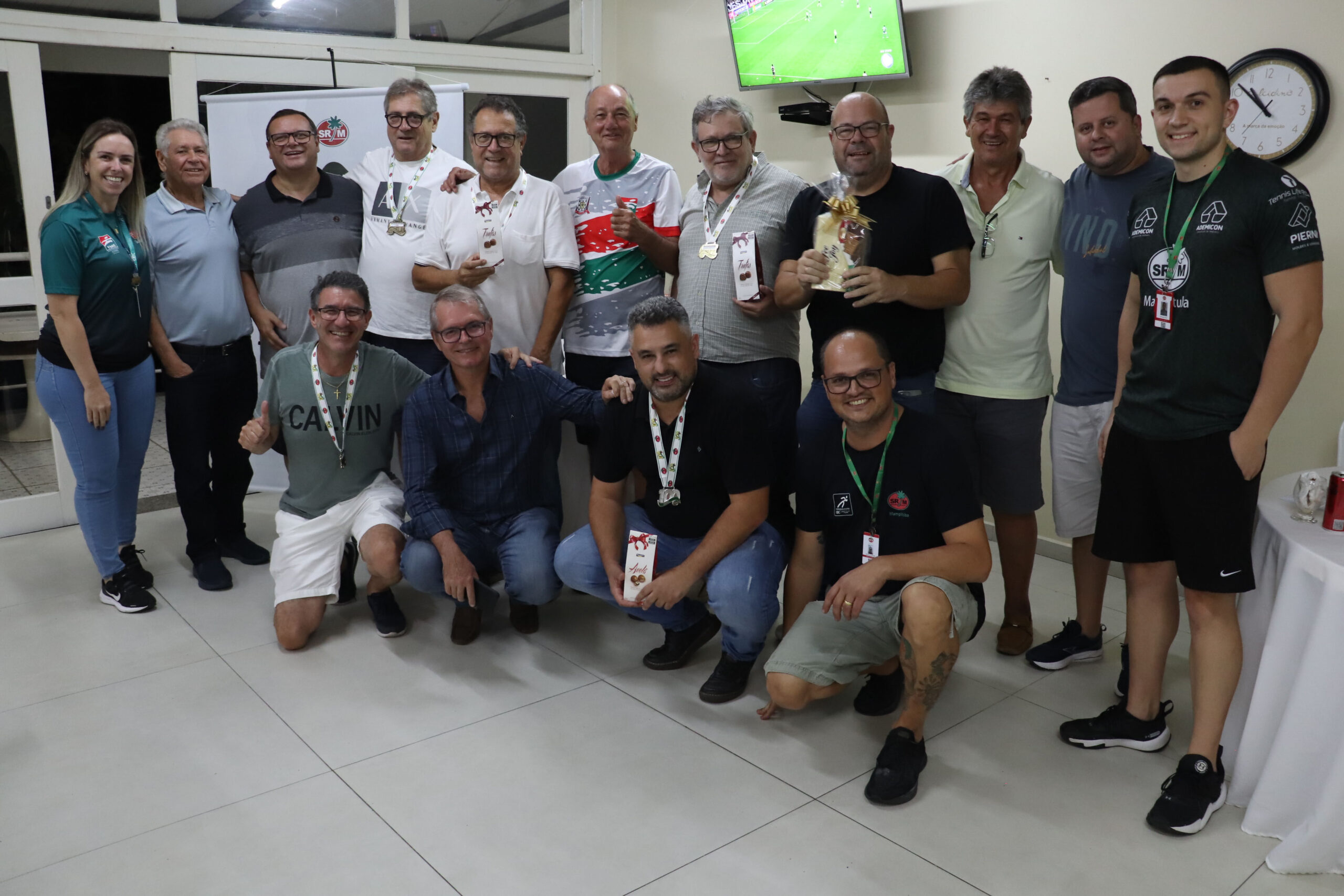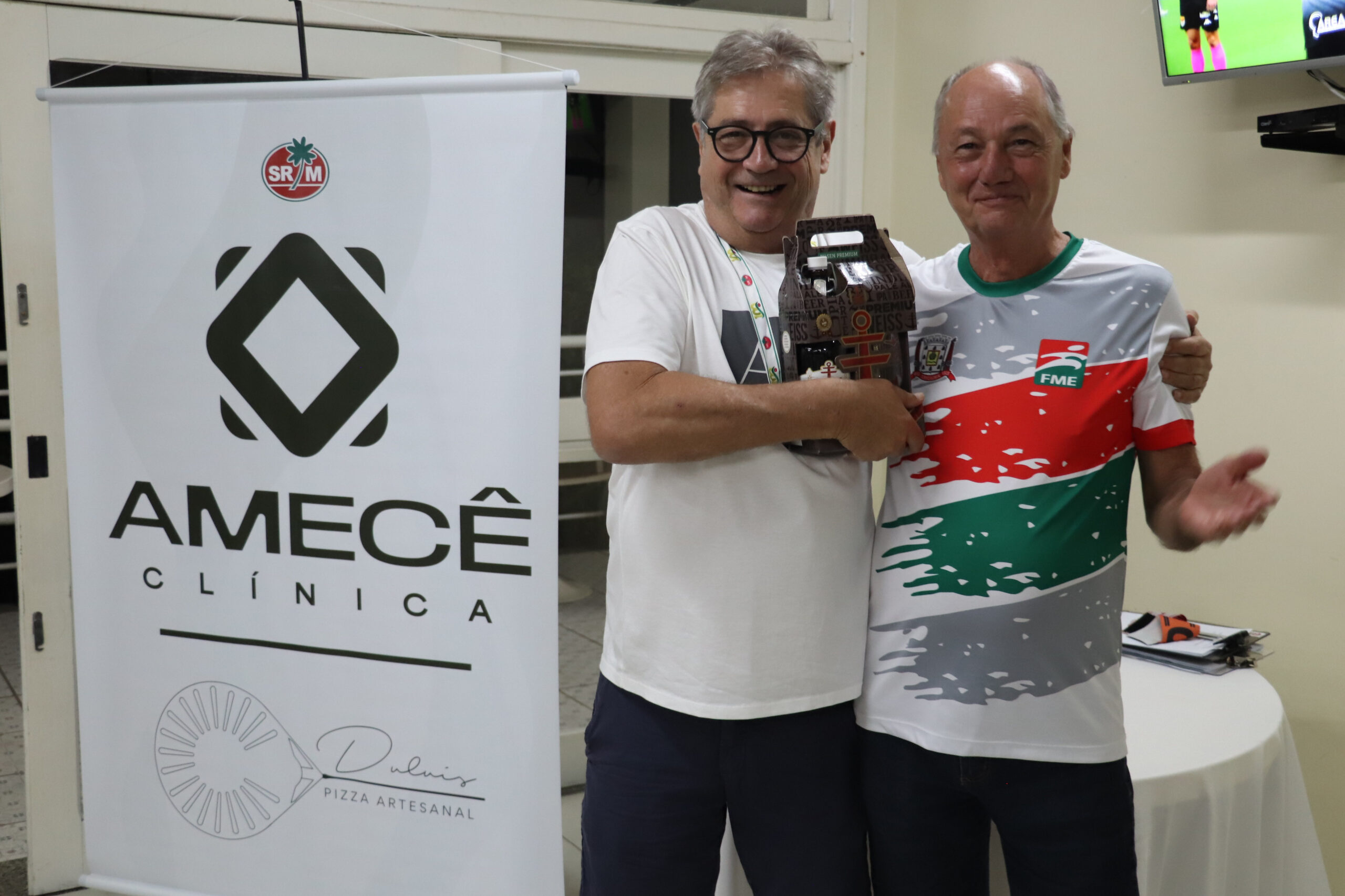 Nesta quinta-feira (27), 16 associados participaram do Torneio “Clínica Amecê e Duluis Pizzas” de Dominó Masculino, disputado em um formato de quatro rodadas. Após confrontos equilibrados, a dupla Manoel Rodrigues e Adriano Cassetari foi campeã com quatro vitórias e somando 456 pontos.