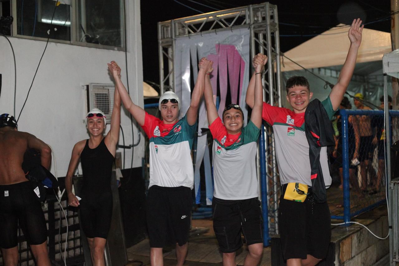 No revezamento 4x100m medley misto, nossos atletas Isabella, Mateus, Vinicius e Maria Eduarda, nadaram a prova em 4’49’’35 alcançando a 28° colocação.