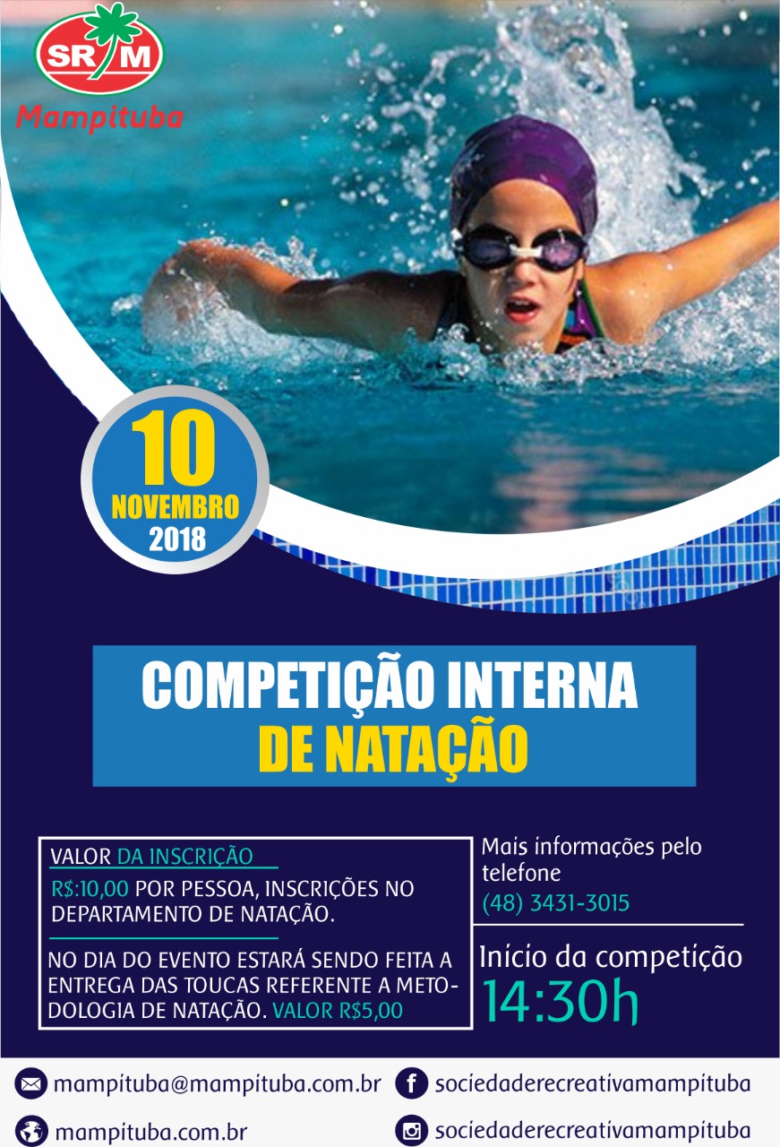 Na tarde de sábado, dia 10, a Sociedade Recreativa Mampituba realizará uma Competição Interna de Natação. A inscrição para o evento deve ser feita no departamento de natação do Clube e custa R$ 10,00. O evento tem início às 14:30h. Na data também estarão disponíveis as novas toucas de metodologia de natação. Cada unidade terá […]