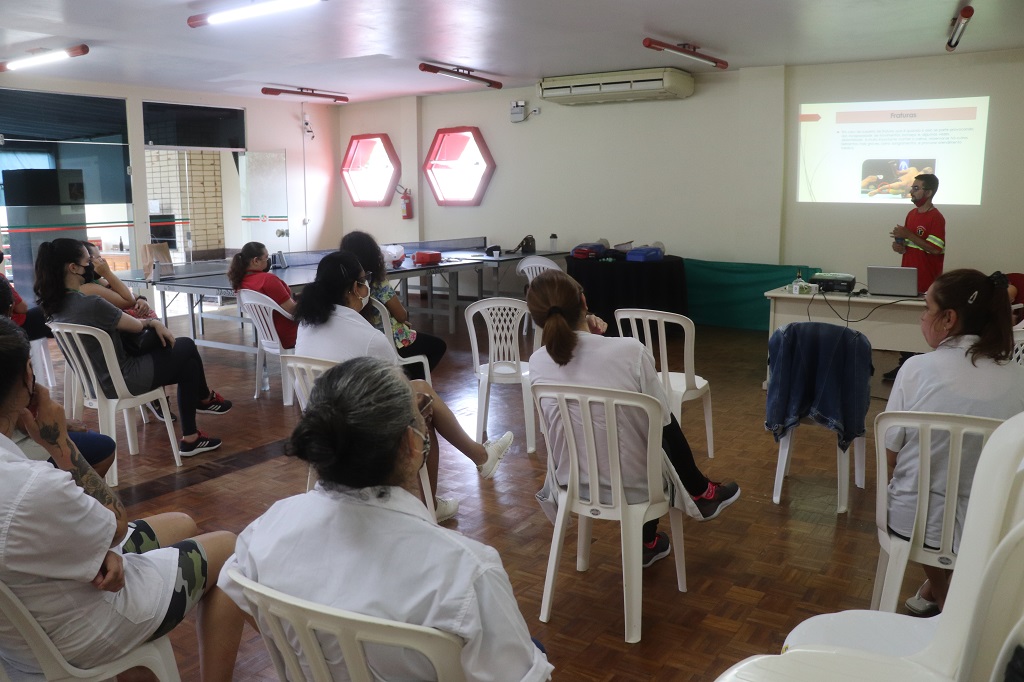 Cerca de 30 colaboradores de diferentes setores do Mampituba participaram de um curso sobre Atendimento Pré-Hospitalar (APH) e utilização de Desfibrilador Externo Automático (DEA). O treinamento ocorreu na manhã e tarde dessa segunda-feira (29), nas dependências do clube.