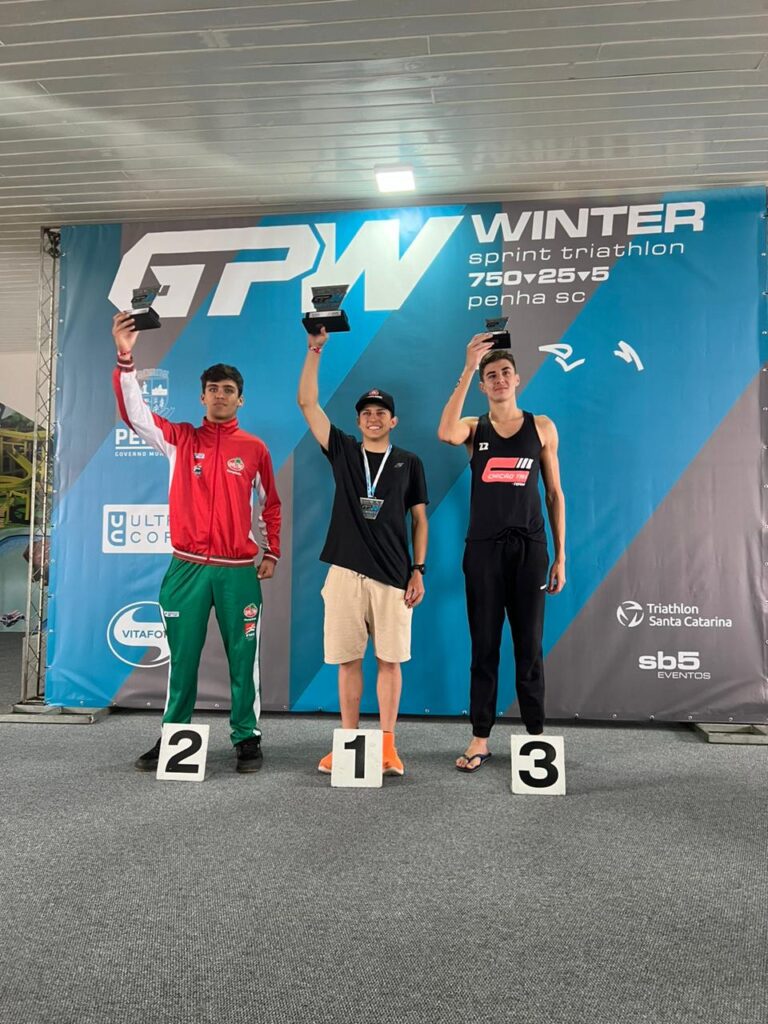 Já João Pedro Mondardo garantiu o 2º lugar na categoria 16/19 anos e João Henrique Silveira conquistou o 3º lugar na categoria 20/25 anos. Participaram da competição, ainda, os integrantes do Triathlon Mampituba e sócios Luiz Eduardo Bilésimo, Júlia Martins e Patrícia Reis. A competição foi disputada na distância Sprint que consiste em 750m de natação, 20km de ciclismo e 5km de corrida.